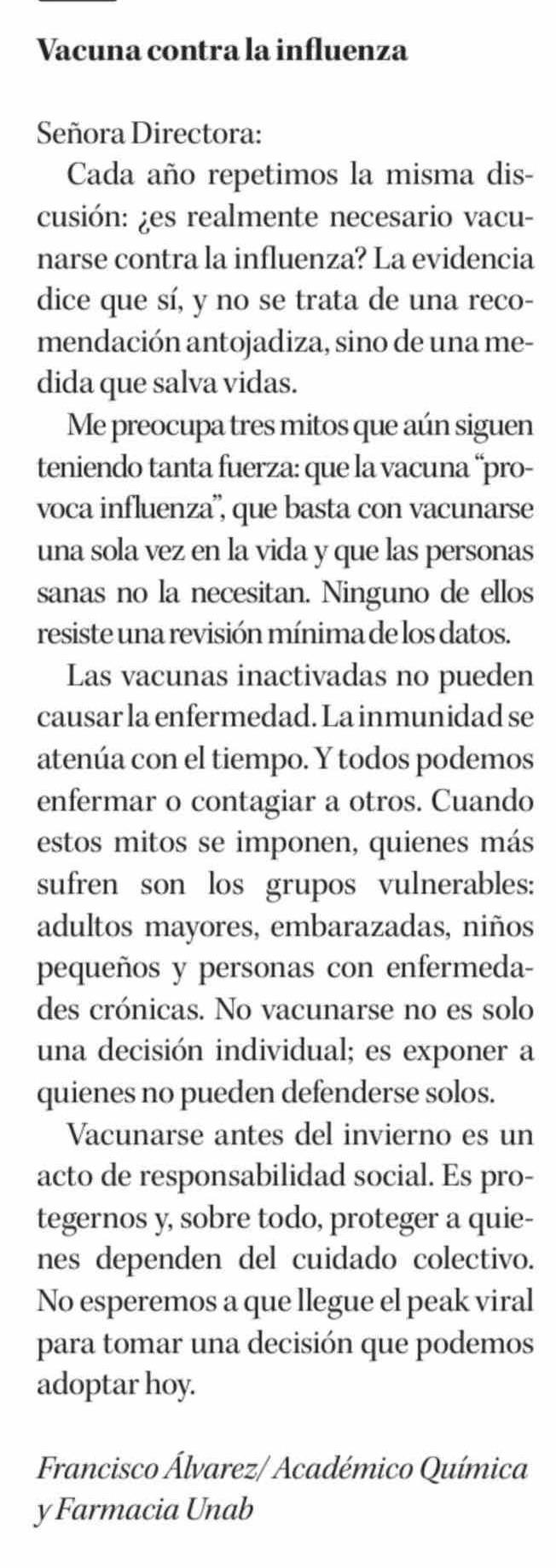 Cartas: Vacuna contra la influenza 27-03-2026 Diario Concepción |