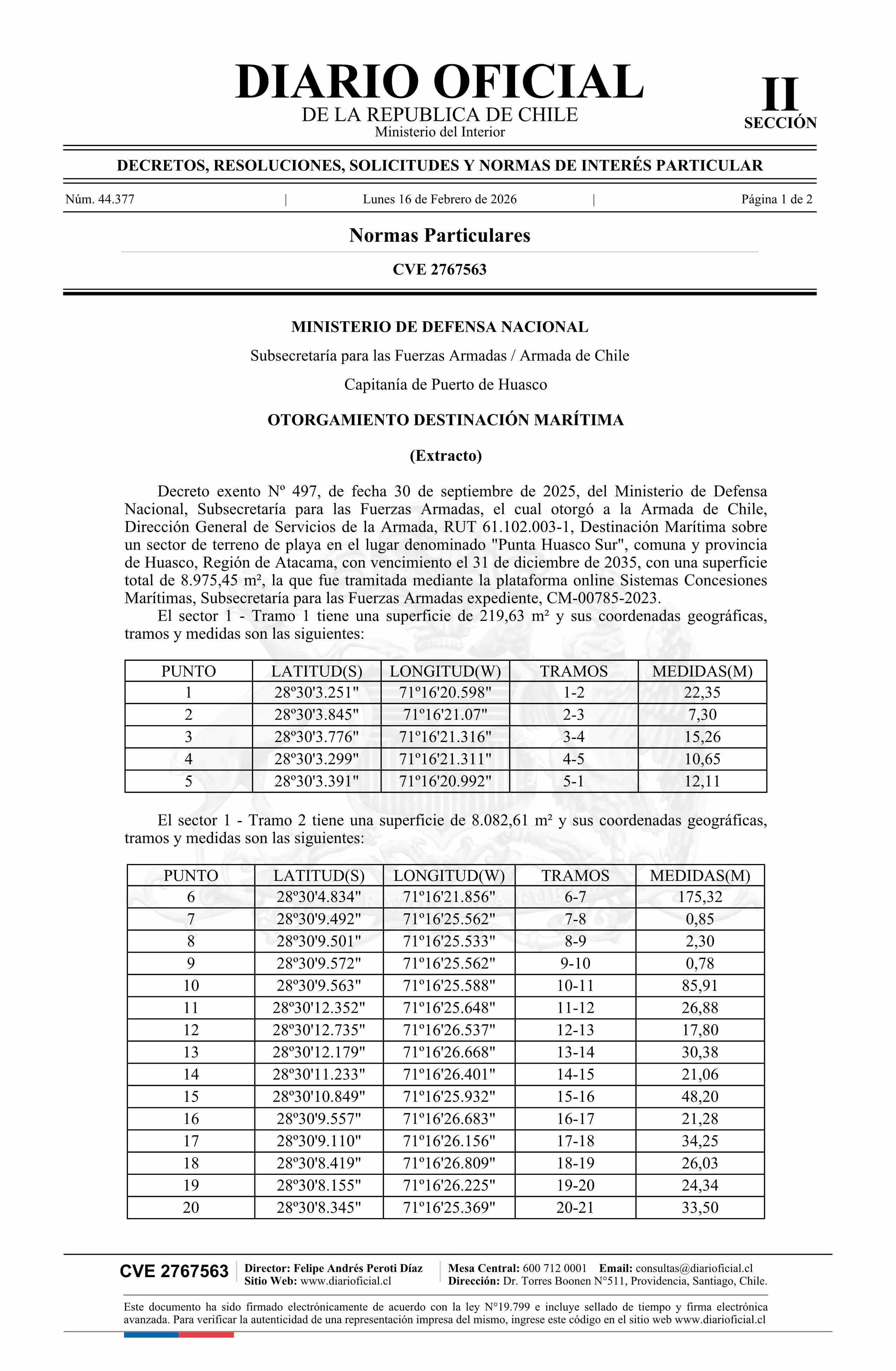 | Fuente: | Diario Oficial Edición Electrónica (Diario Oficial de Chile - 2 Normas Particulares) | Página(s): | 15-16 |