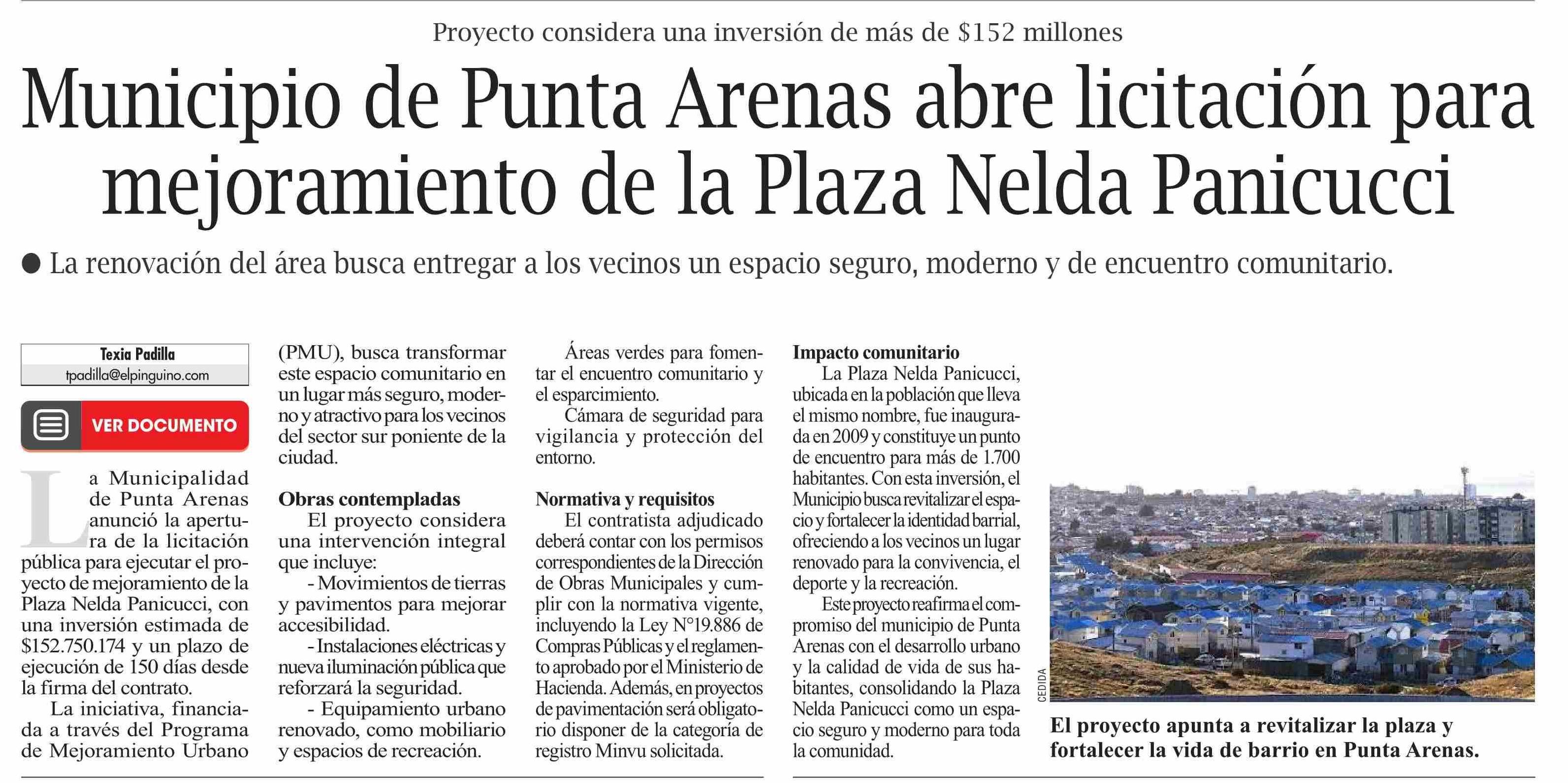 | Título: | Municipio de Punta Arenas abre licitación para mejoramiento de la Plaza Nelda Panicucci |