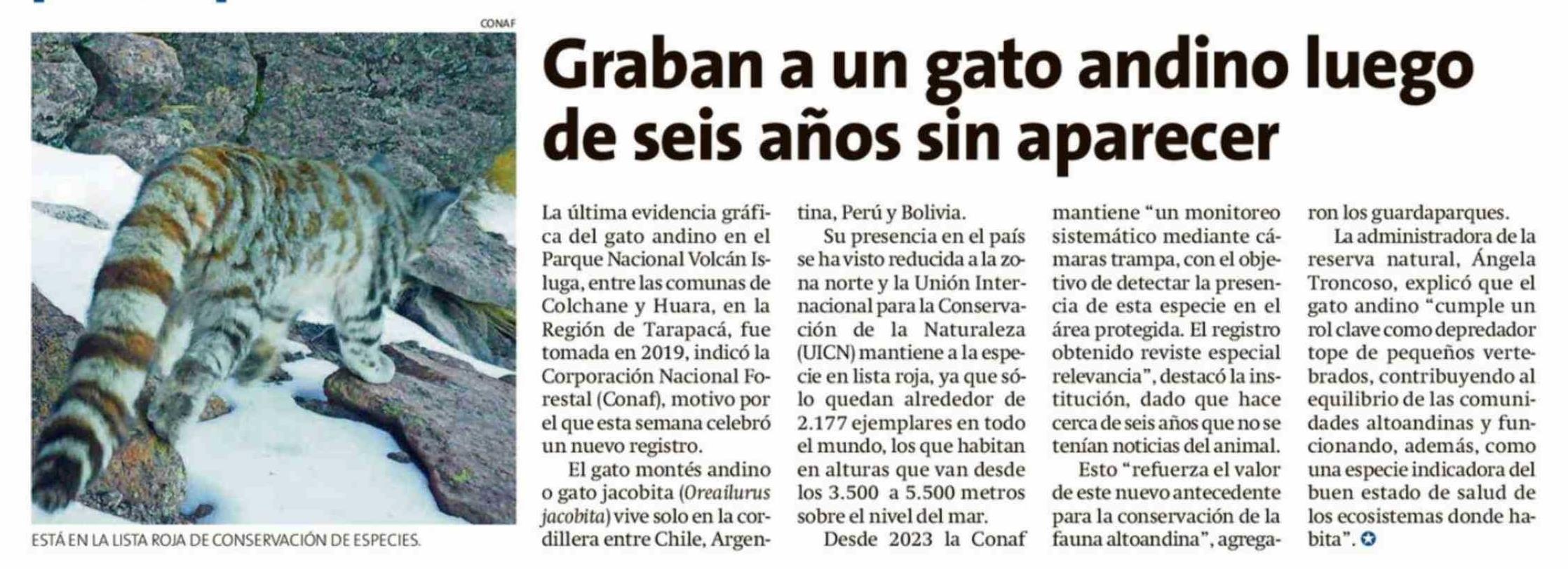 | Título: | Graban a un gato andino luego de seis años sin aparecer |
