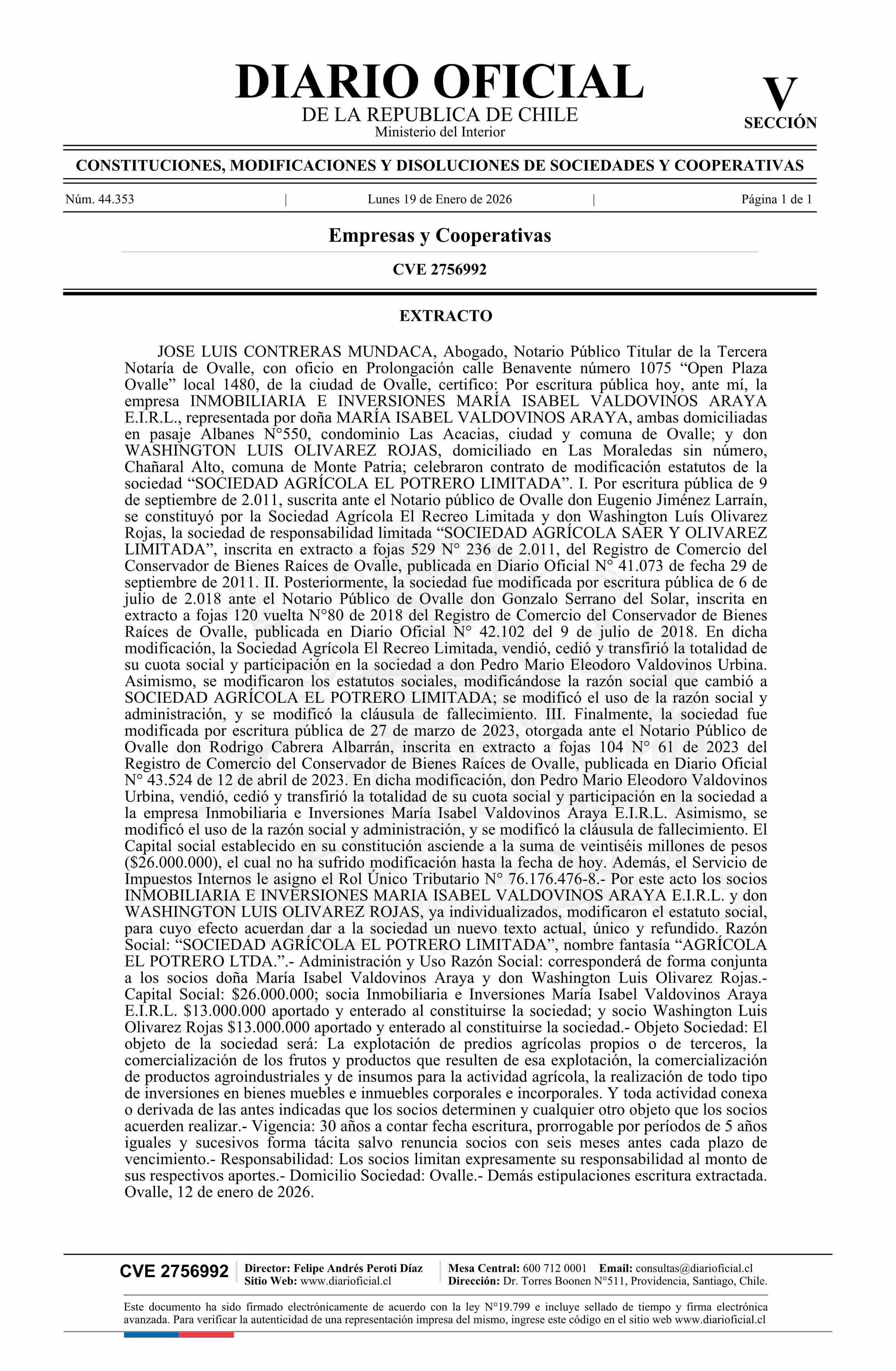 Título: SOCIEDAD AGRÍCOLA EL POTRERO LIMITADA 76.173.476-8*