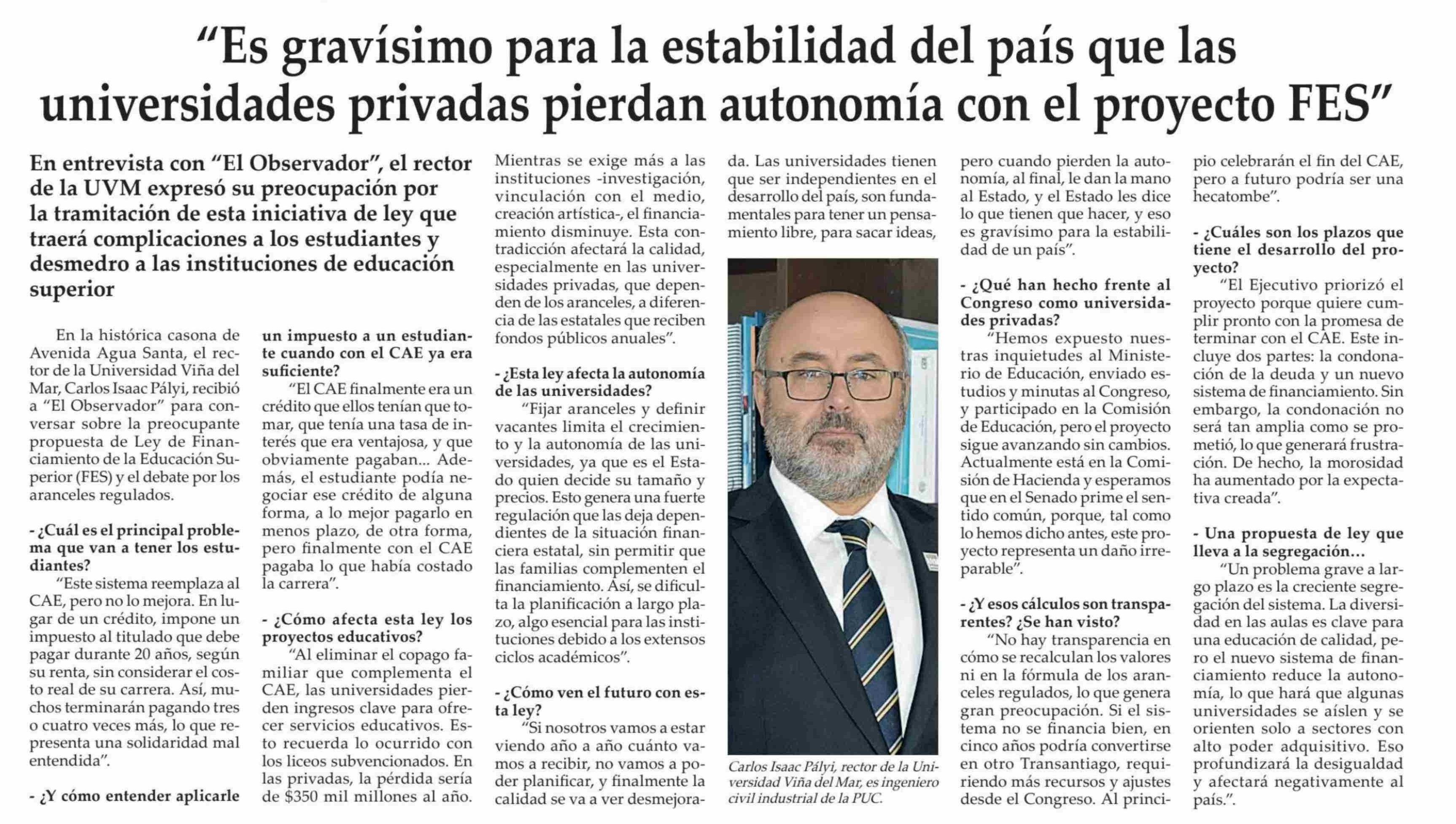 “Es gravísimo para la estabilidad del país que las universidades privadas pierdan autonomía con el proyecto FES” 23-05-2025 El Observador |
