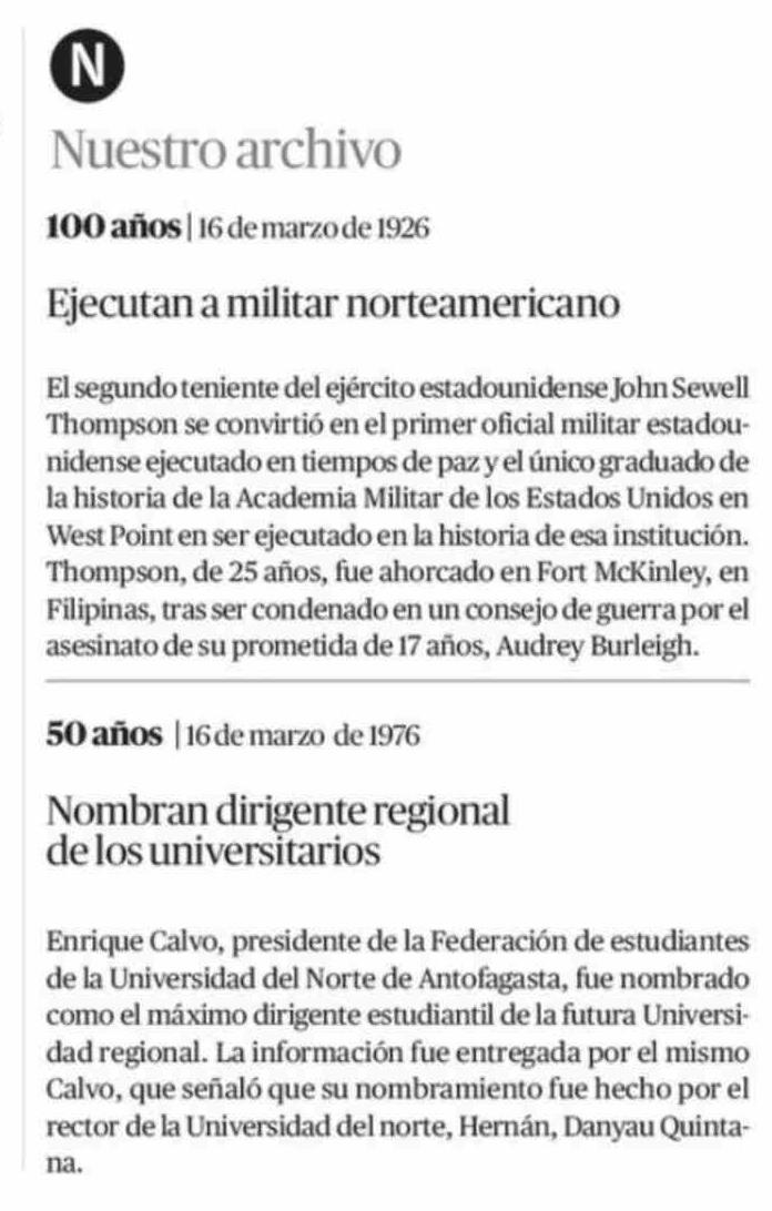 Nuestro archivo 16-03-2026 El Mercurio de Calama |