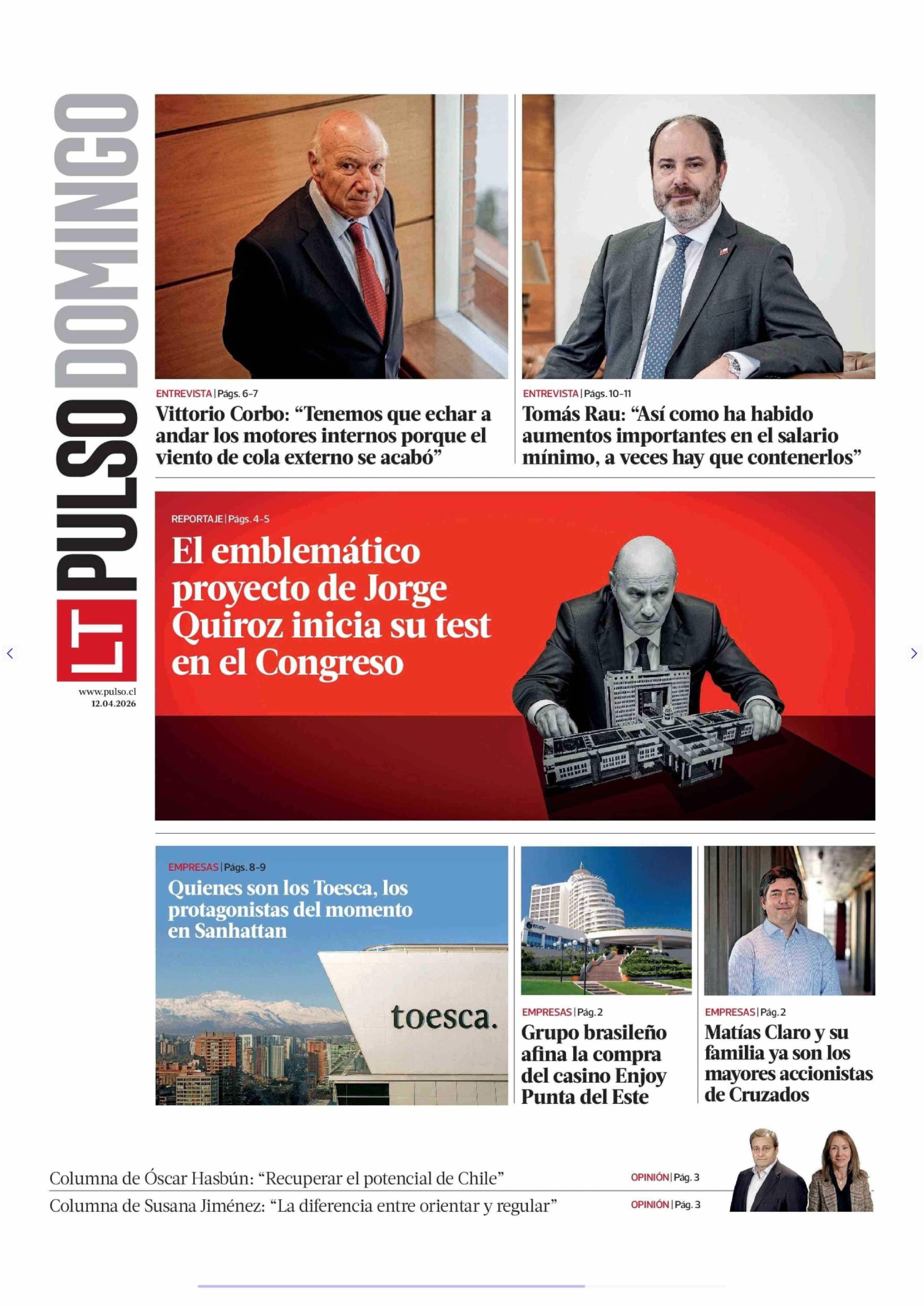 PORTADA LA TERCERA (PULSO) CHILE 12-04-2026 La Tercera |