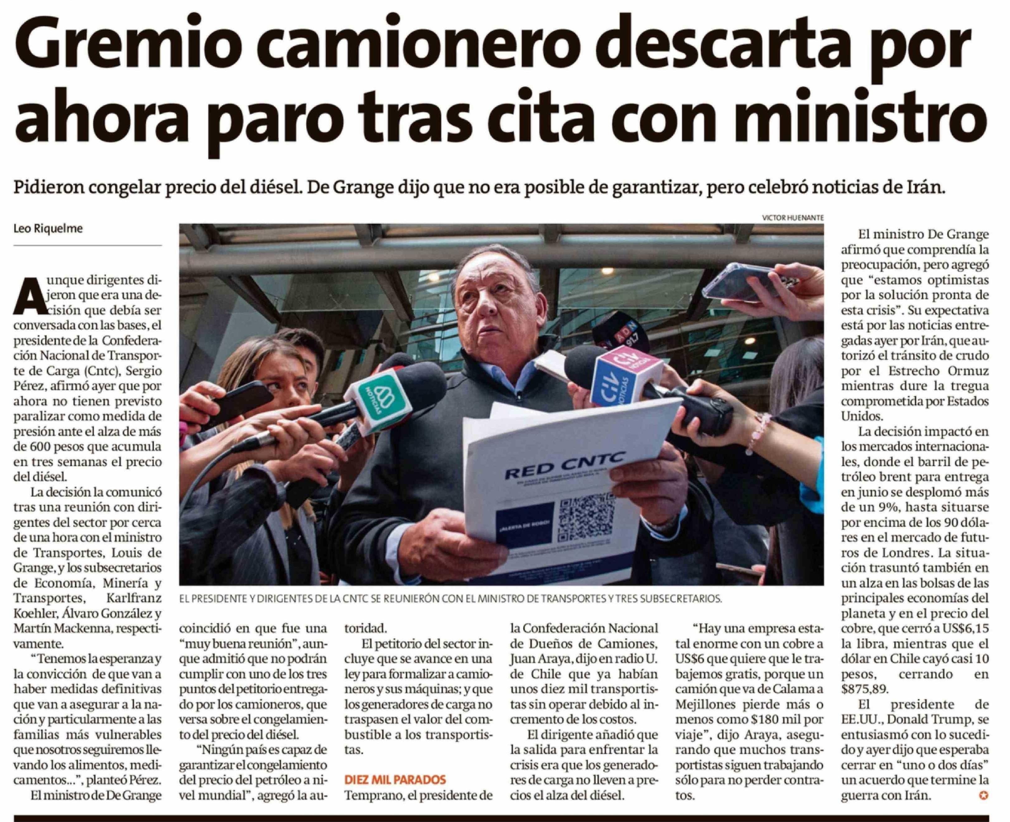 Título: Gremio camionero descarta por ahora paro tras cita con ministro