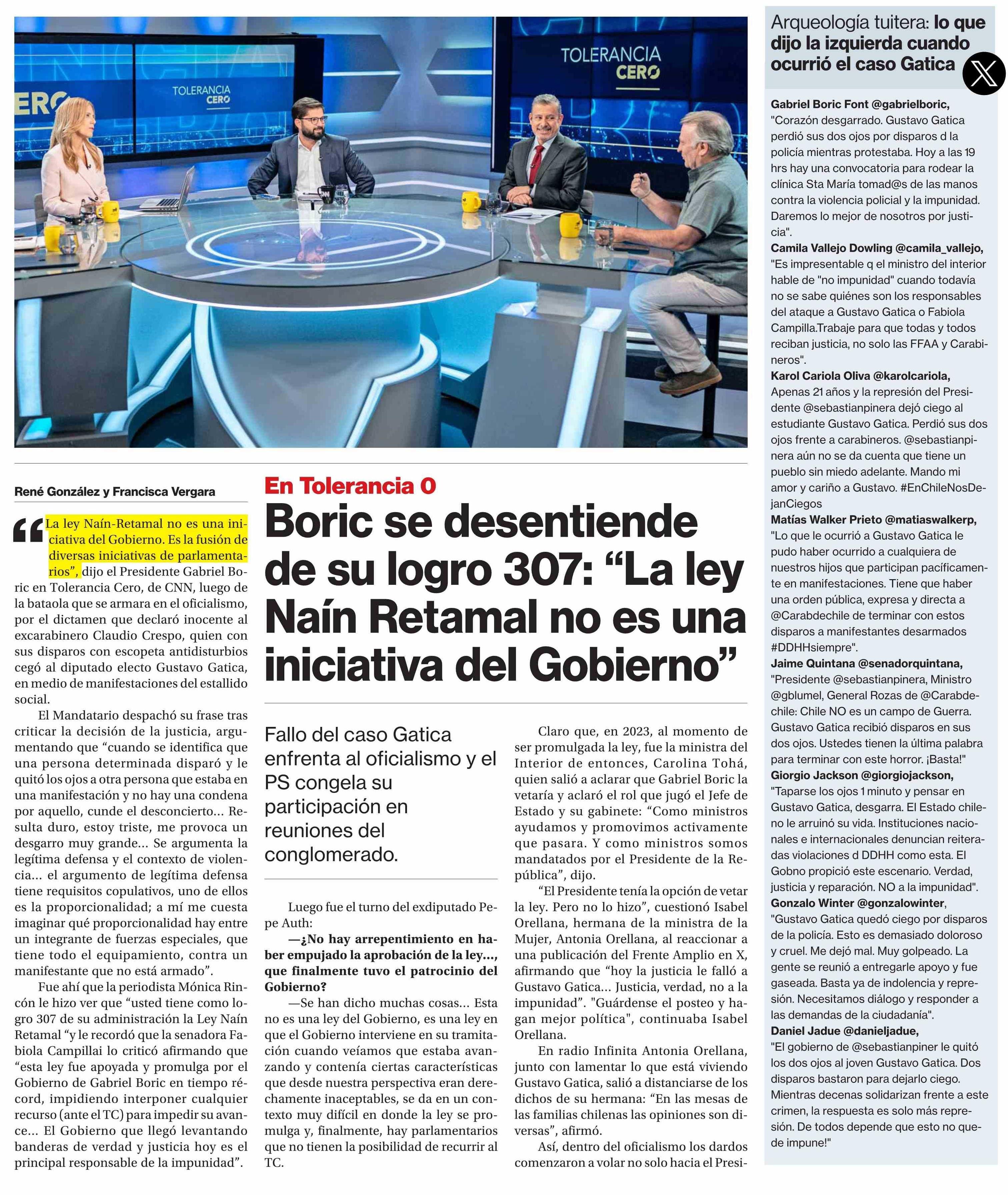 | Título: | Boric se desentiende de su logro 307: "La ley Naín Retamal no es una iniciativa del Gobierno" |
