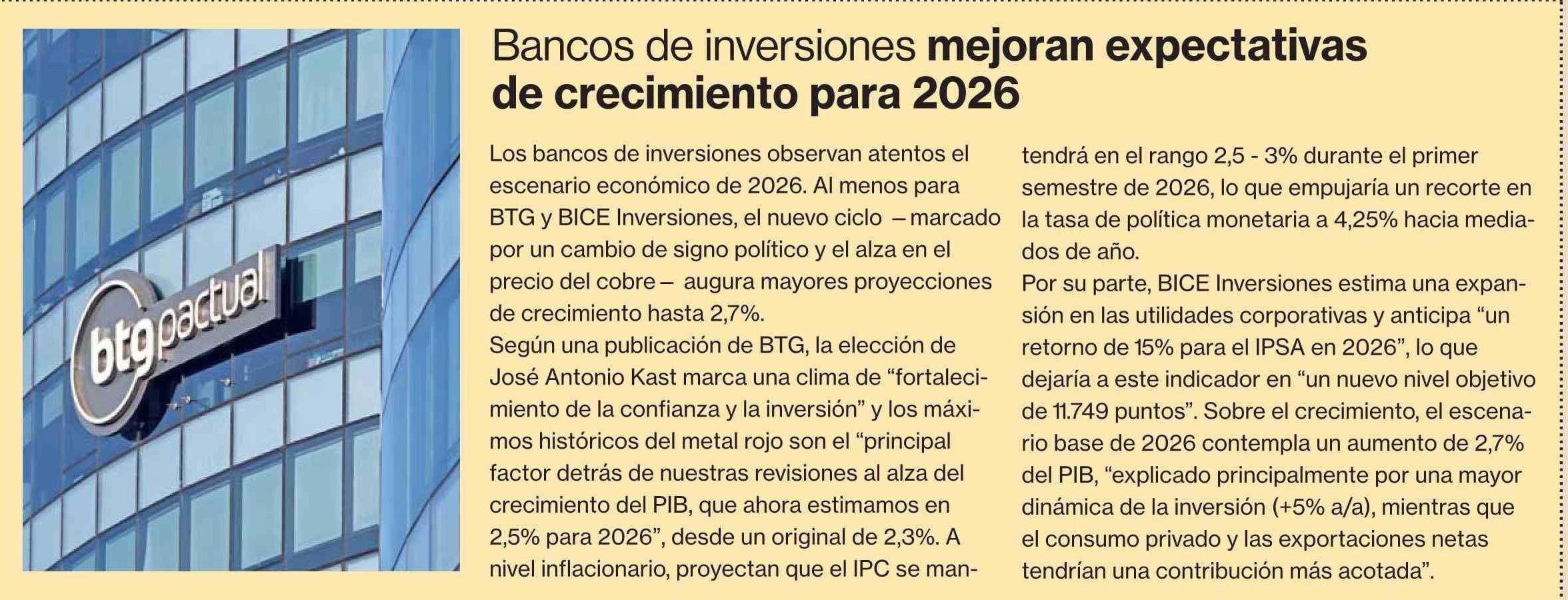 Título: Bancos de inversiones mejoran expectativas de crecimiento para 2026