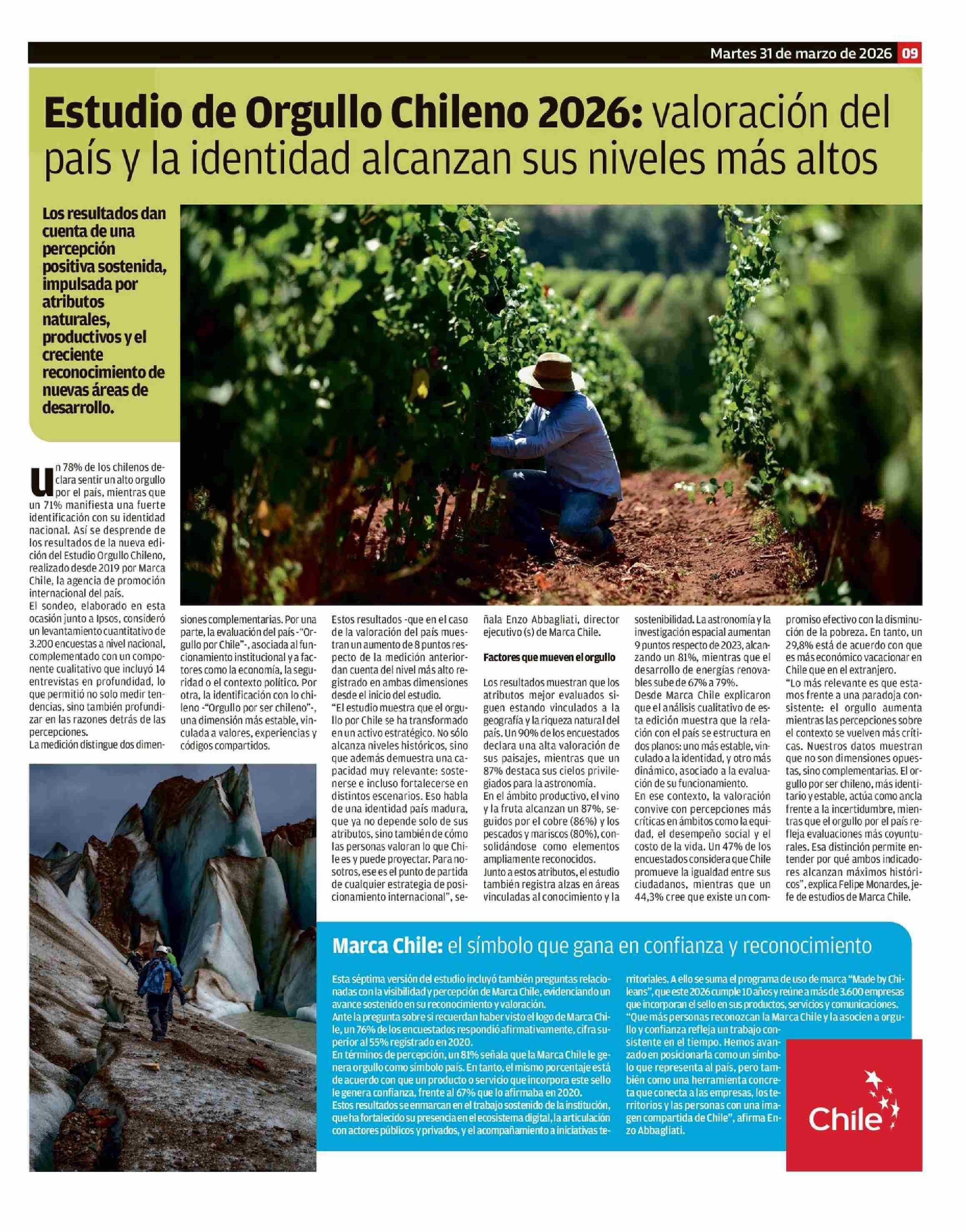 | Título: | Estudio de Orgullo Chileno 2026: valoración del país y la identidad alcanzan sus niveles más altos |