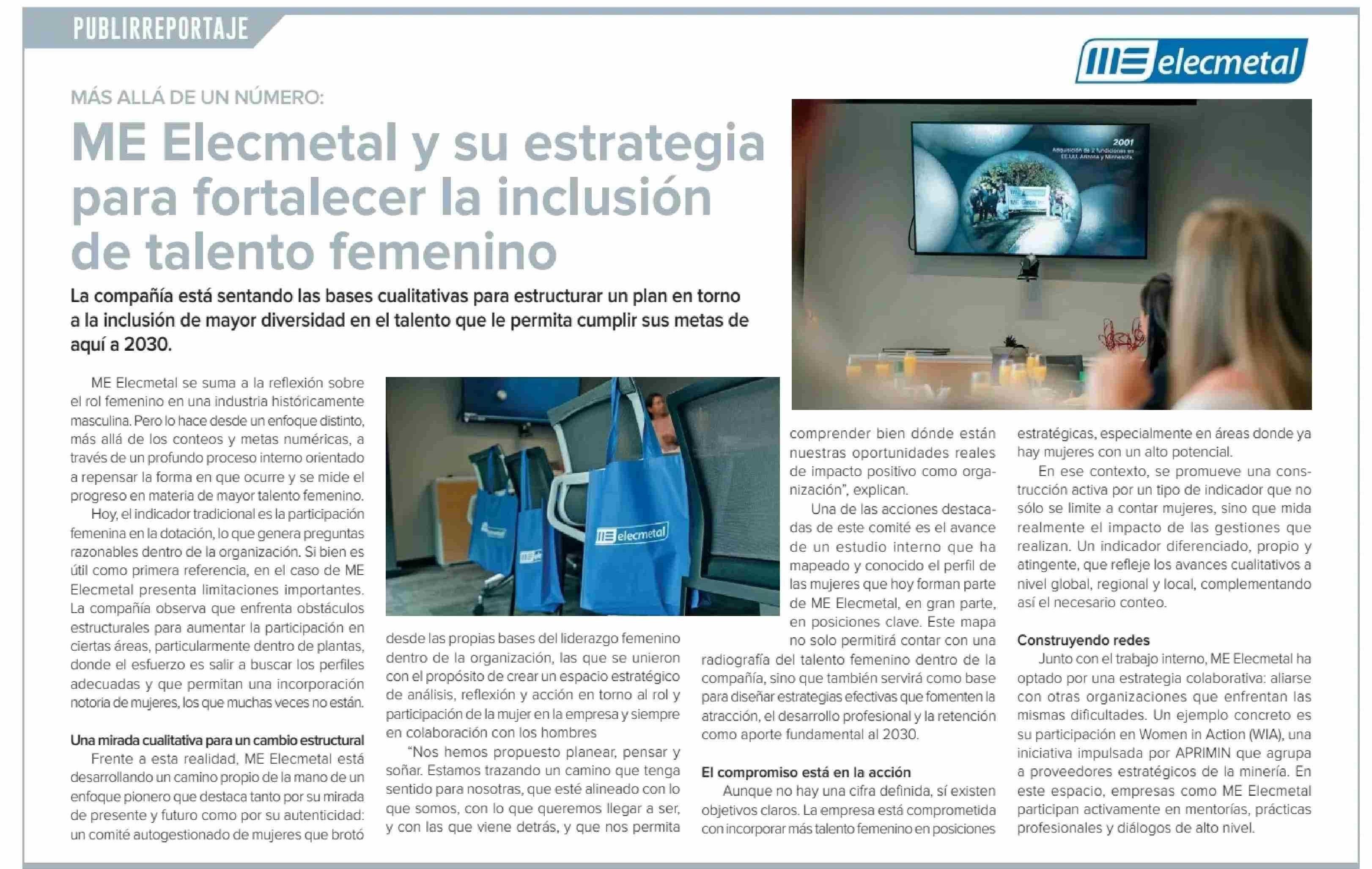 ME Elecmetal y su estrategia para fortalecer la inclusión de talento femenino 15-06-2025 Diario Financiero |