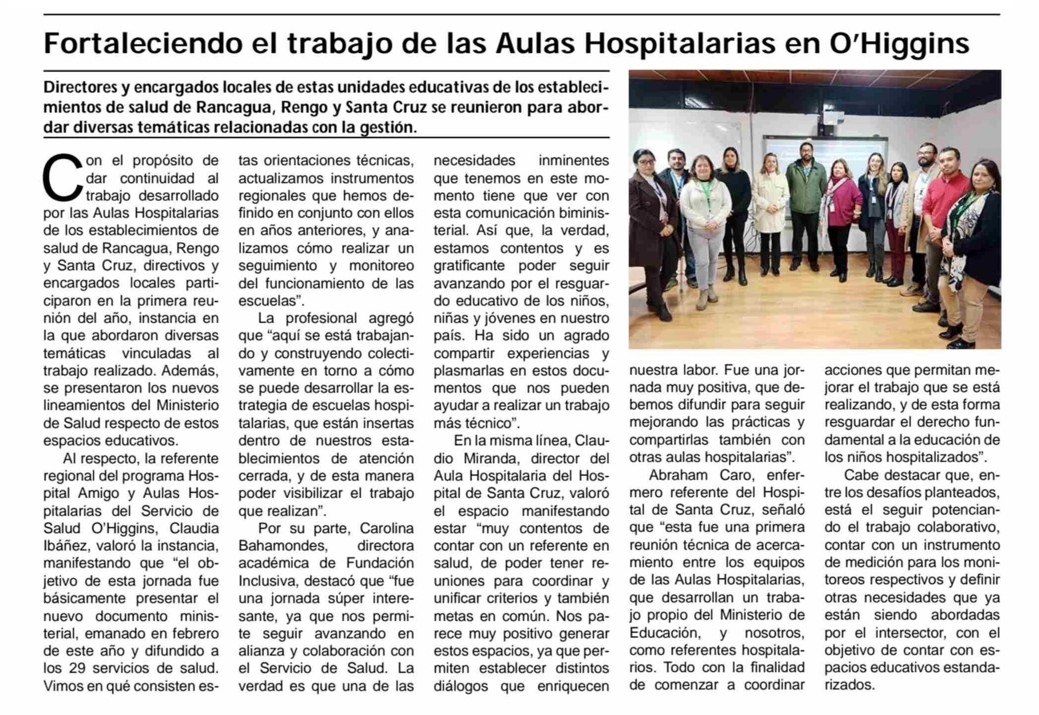 Fortaleciendo el trabajo de las Aulas Hospitalarias en O'Higgins 05-06-2025 Diario El Cóndor |