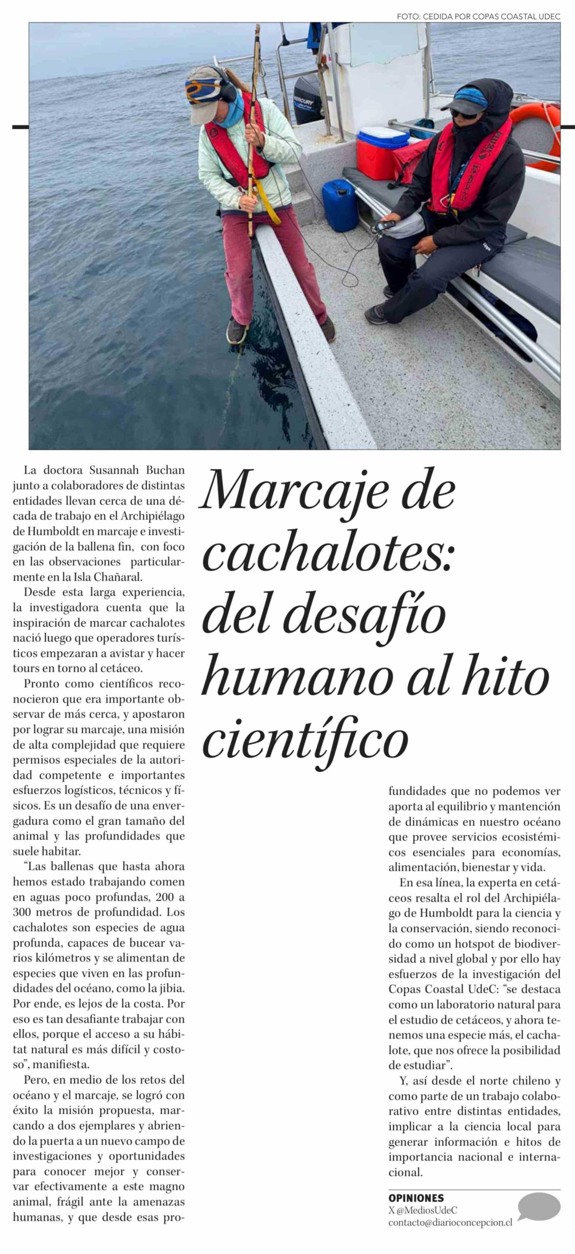Título: Investigadora UdeC participó del primer marcaje satelital de cachalotes en el Pacífico Suroriental