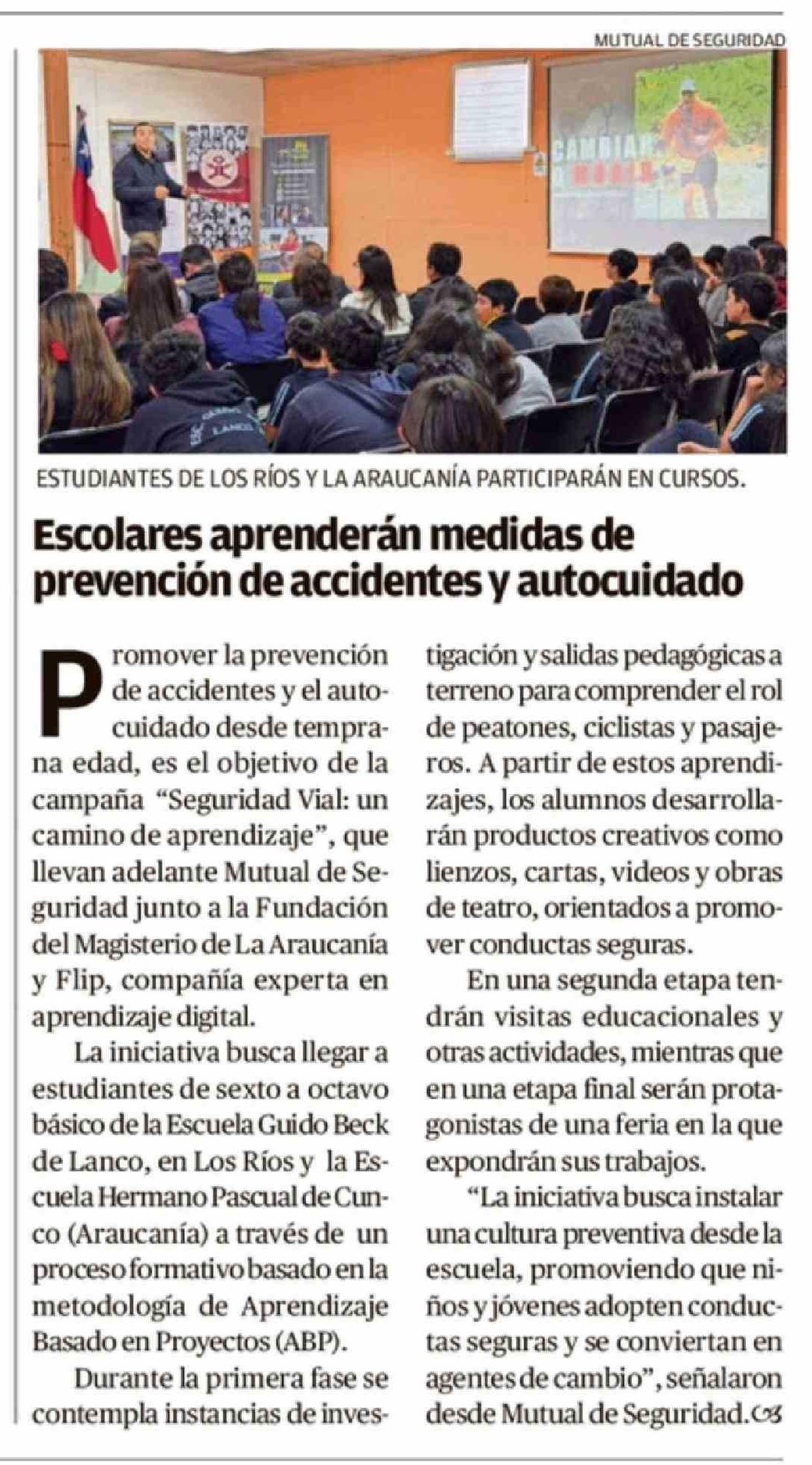 Escolares aprenderan medidas de prevención de accidentes y autocuidado 10-04-2026 Diario Austral Región de Los Ríos |