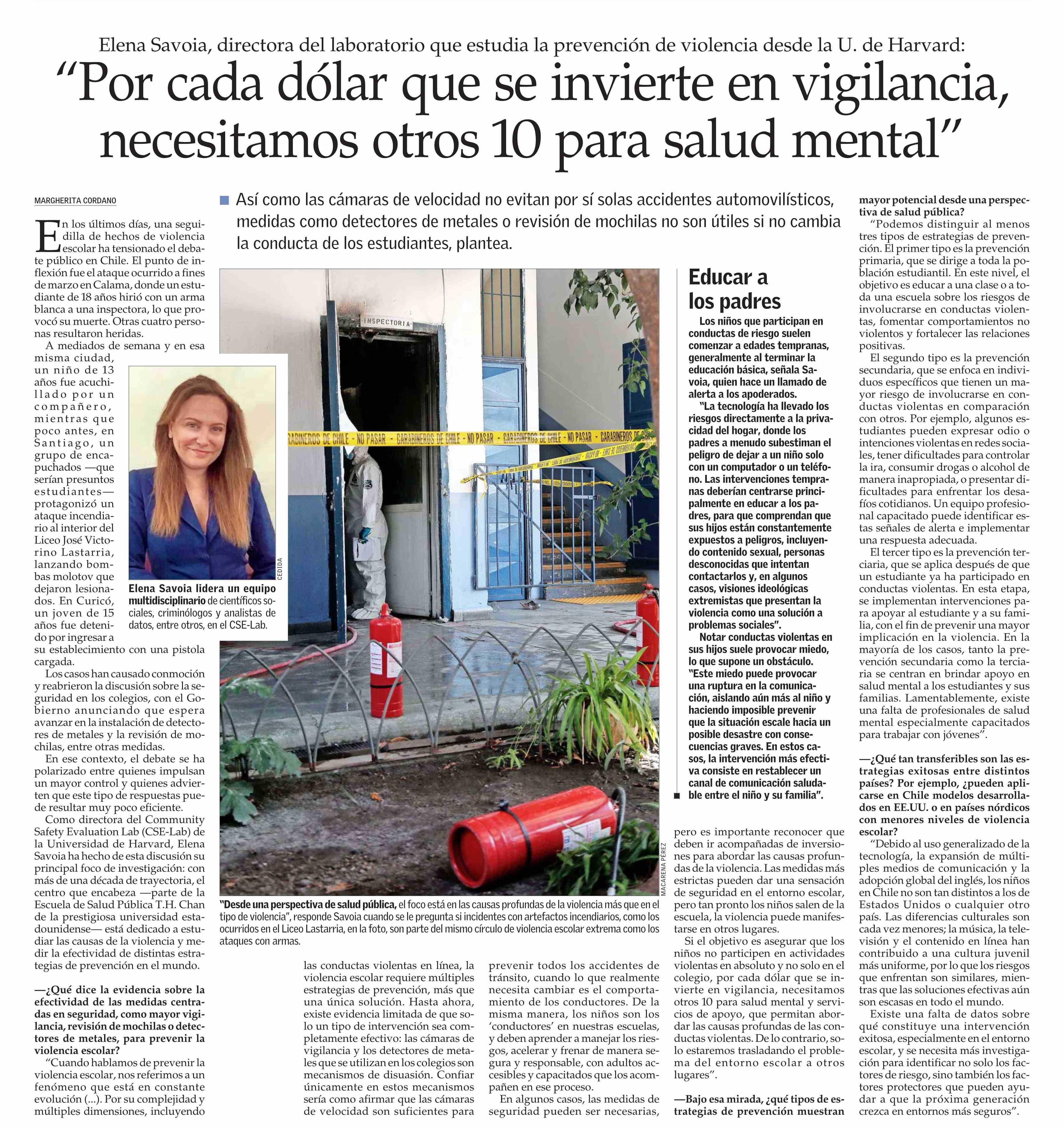 Título: "Por cada dólar que se invierte en vigilancia, necesitamos otros 10 para salud mental"