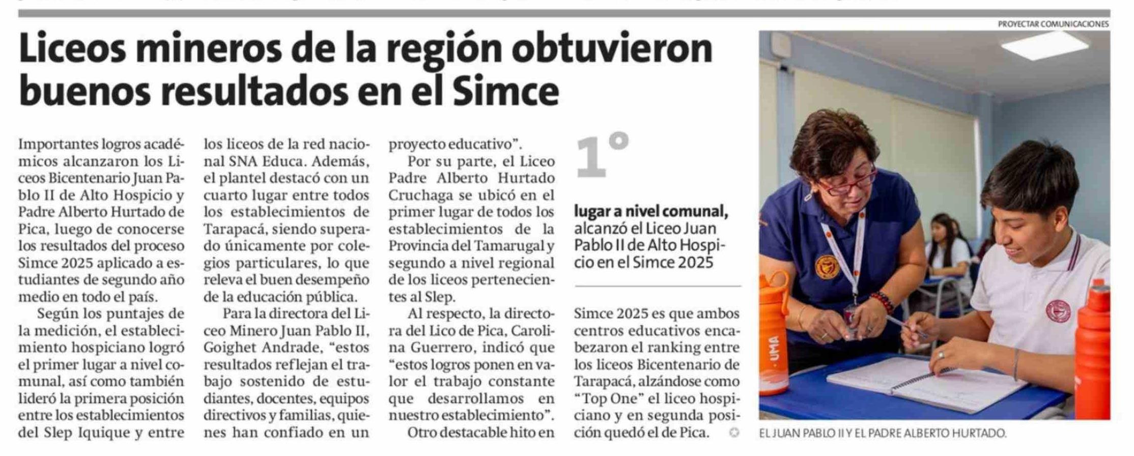 Liceos mineros de la región obtuvieron buenos resultados en el Simce 13-03-2026 La Estrella de Iquique |