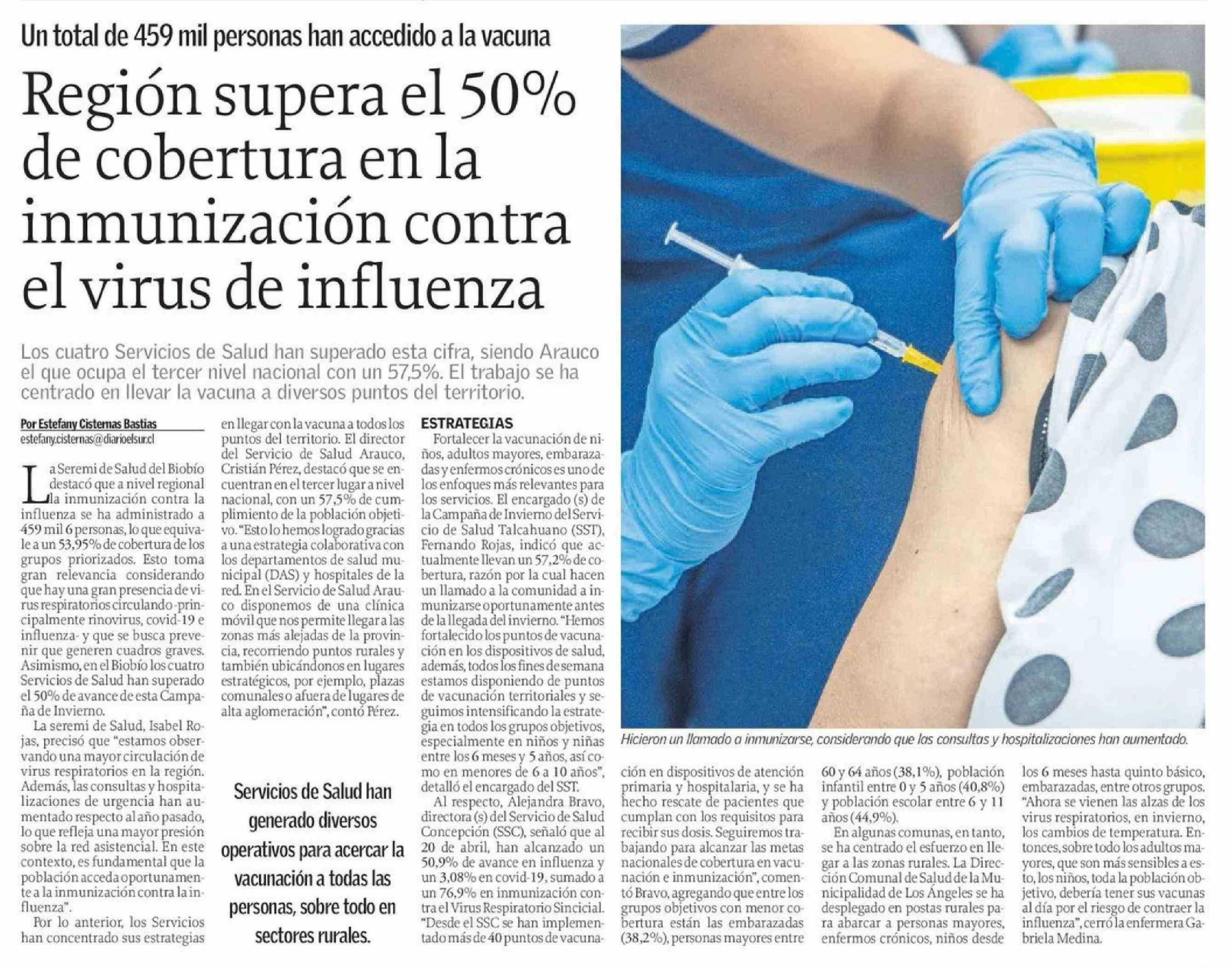 Región supera el 50% de cobertura en la inmunización contra el virus de influenza 21-04-2026 El Sur |