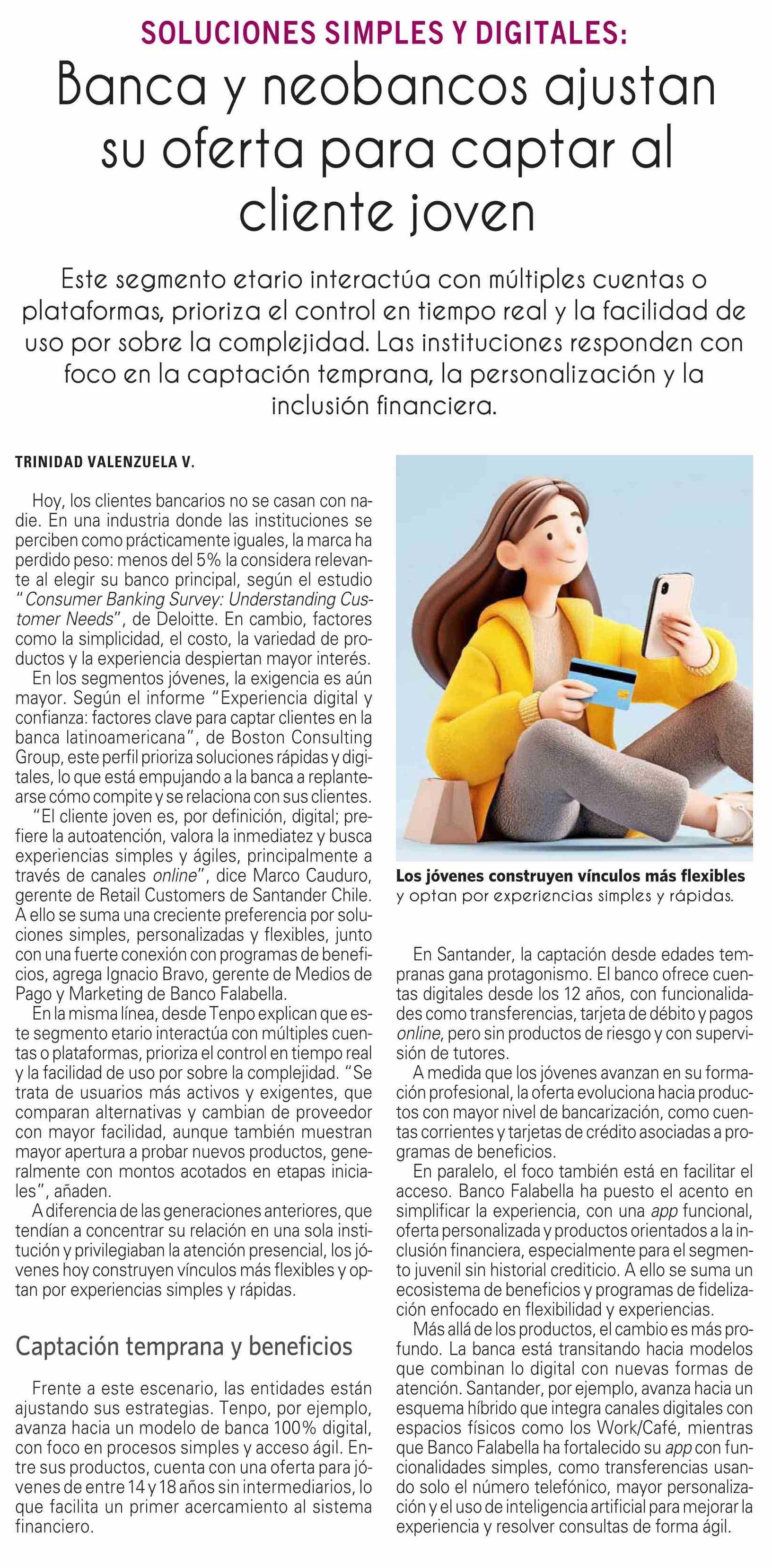 Banca y neobancos ajustan su oferta para captar al cliente joven 14-04-2026 El Mercurio |