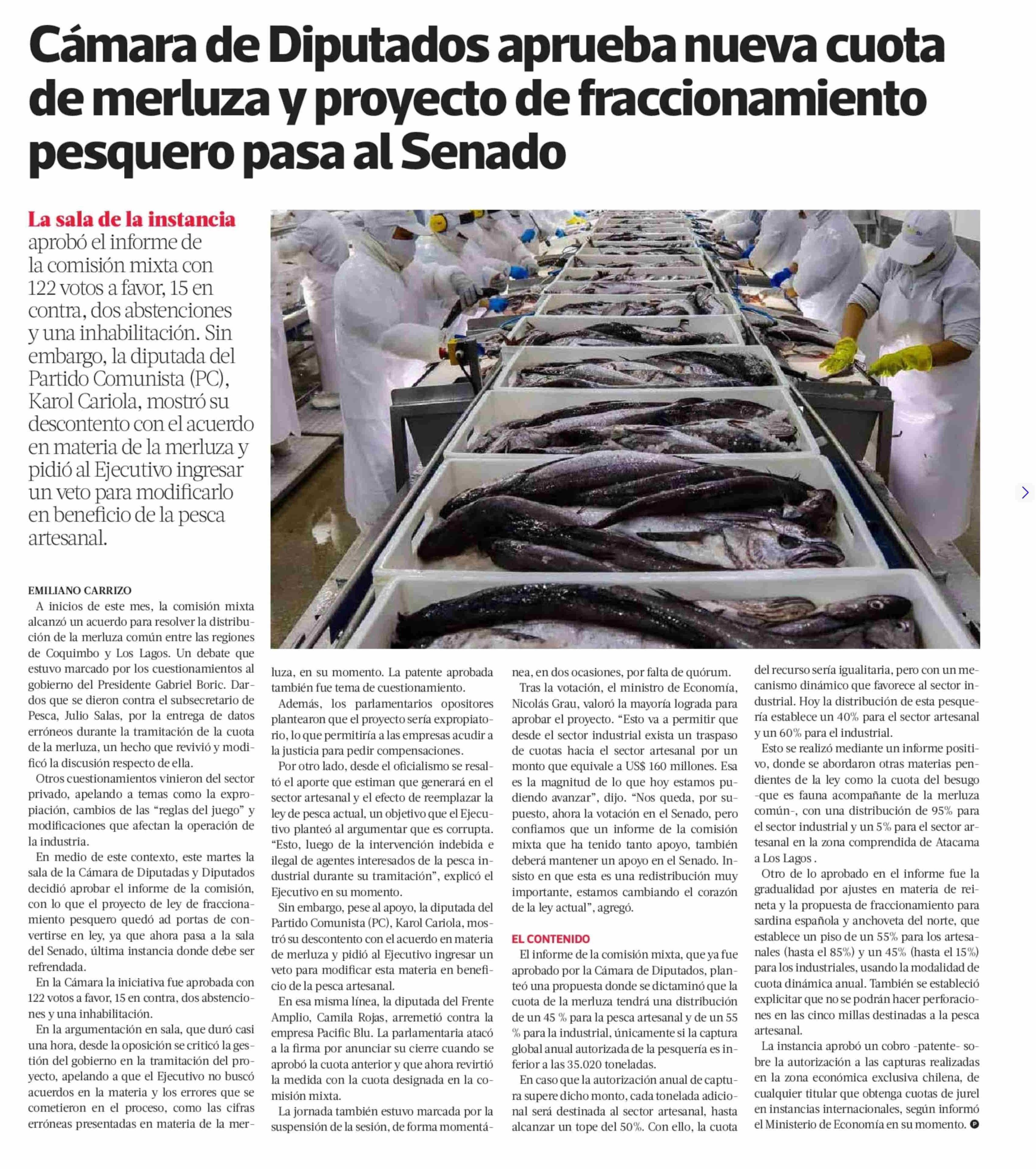 Título: Cámara de Diputados aprueba nueva cuota de merluza y proyecto de fraccionamiento pesquero pasa al Senado