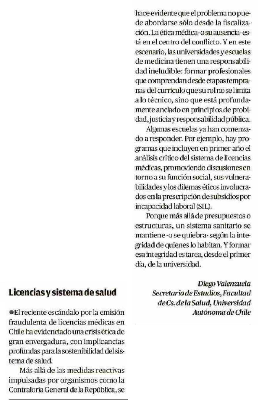 Licencias y sistema de salud 01-06-2025 El Mercurio de Valparaíso |