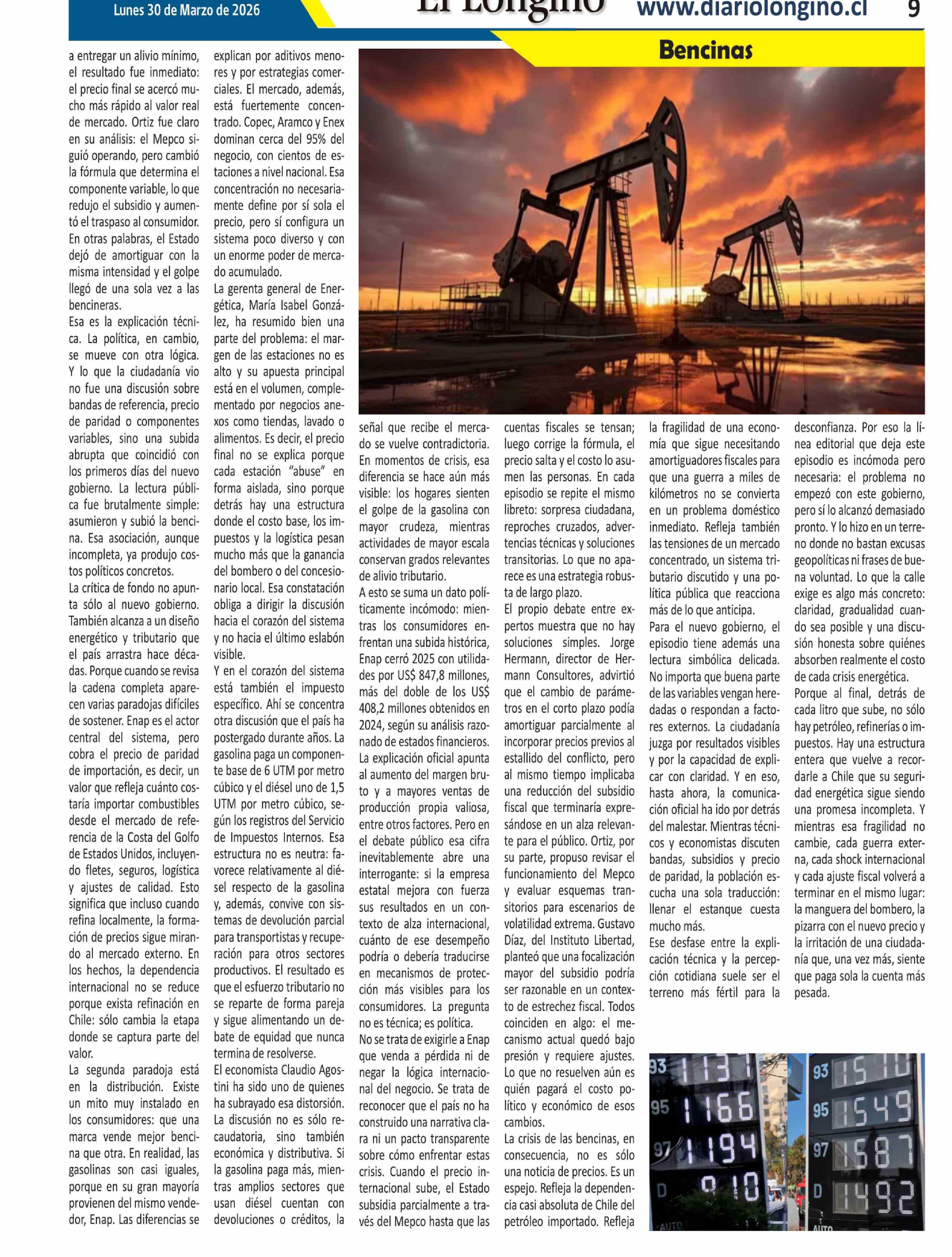 La bencina estalla en la calle y desnuda la fragilidad energética de Chile 30-03-2026 El Longino |