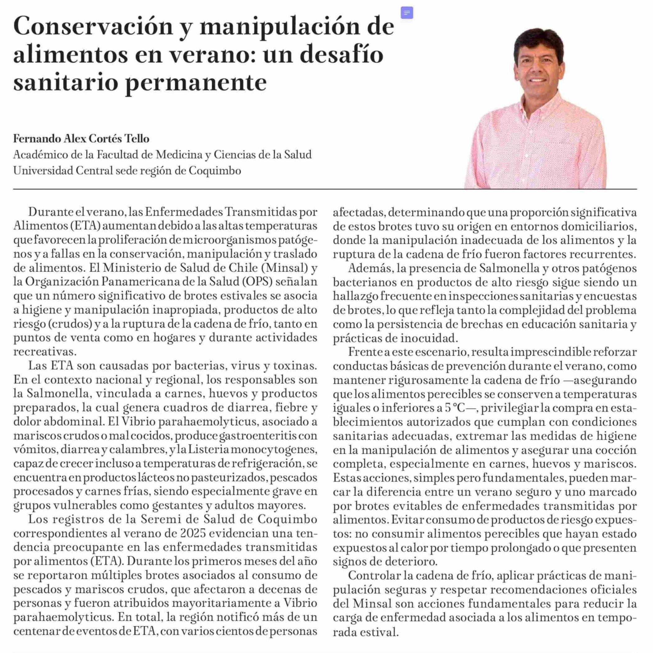 Columnas de Opinión: Conservación y manipulación de alimentos en verano: un desafío sanitario permanente 20-01-2026 La Tribuna |