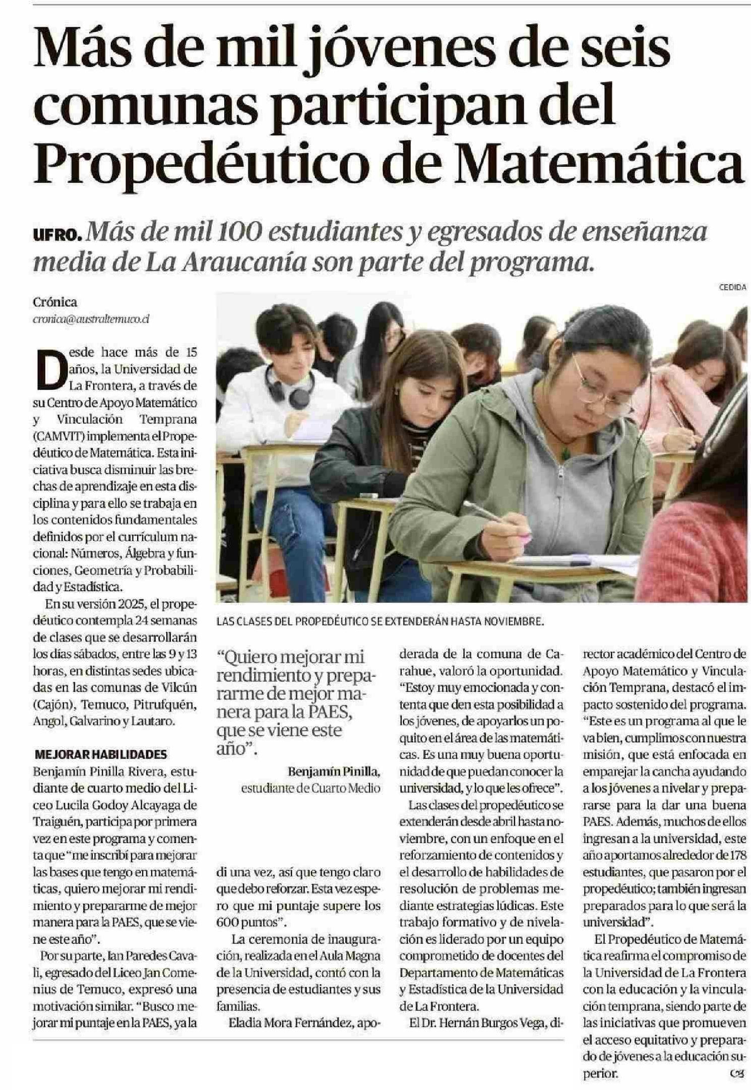 Título: Más de mil jóvenes de seis comunas participan del Propedéutico de Matemática