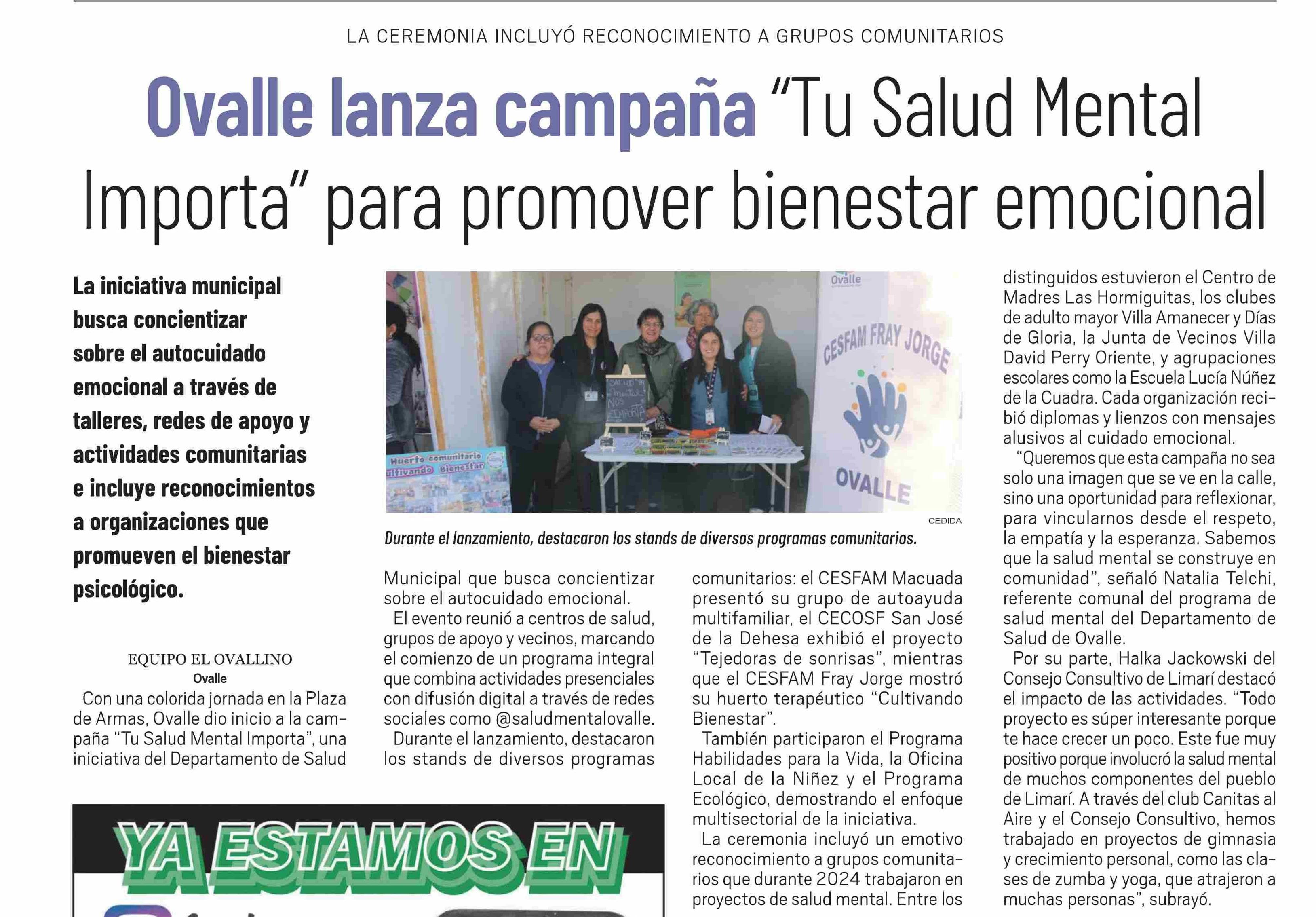 Título: Ovalle lanza campaña "Tu Salud Mental Importa" para promover bienestar emocional