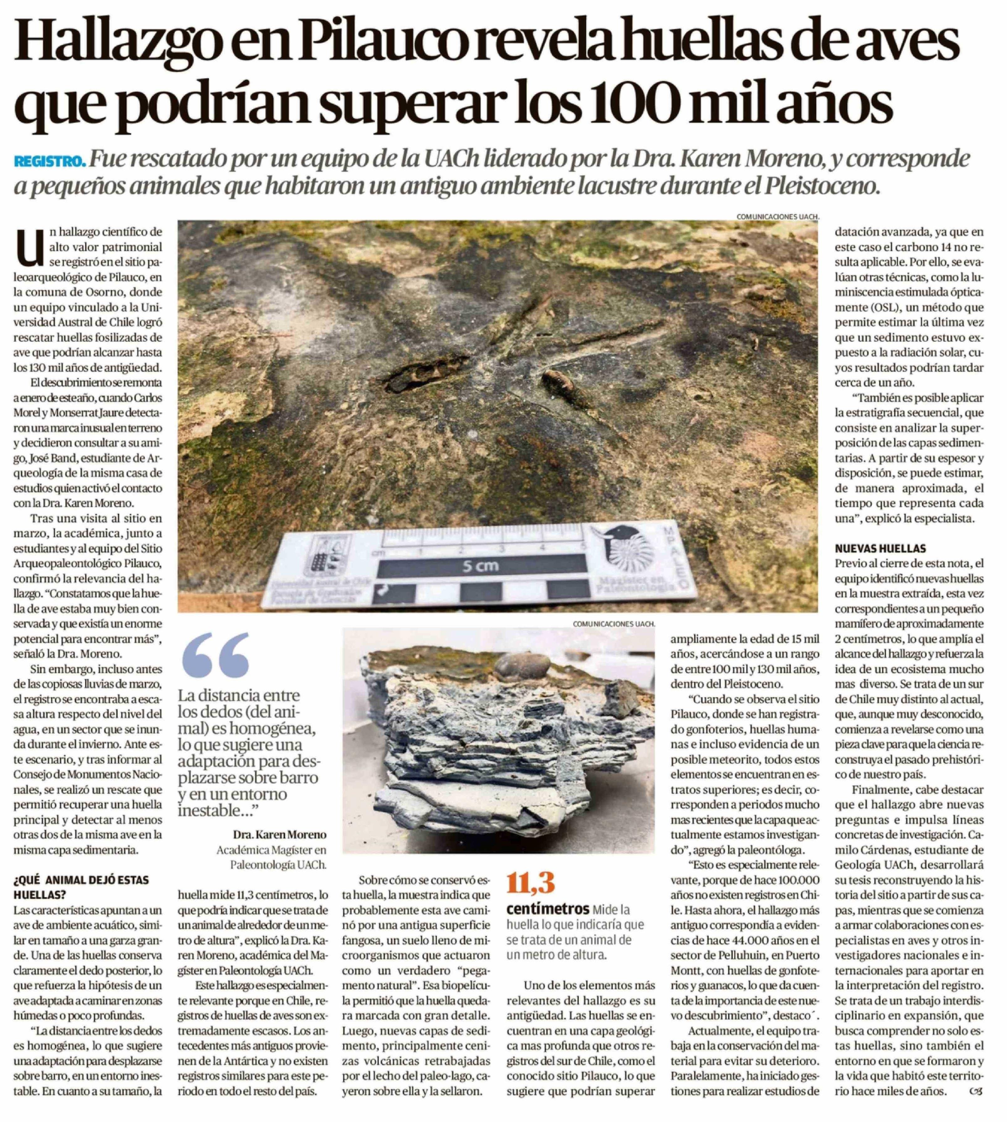 Título: Hallazgo en Pilauco revela huellas de aves que podrían superar los 100 mil años