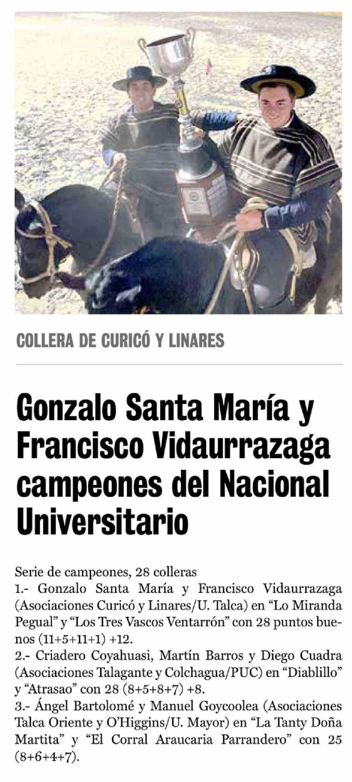 | Título: | Gonzalo Santa María y Francisco Vidaurrazaga campeones del Nacional Universitario |