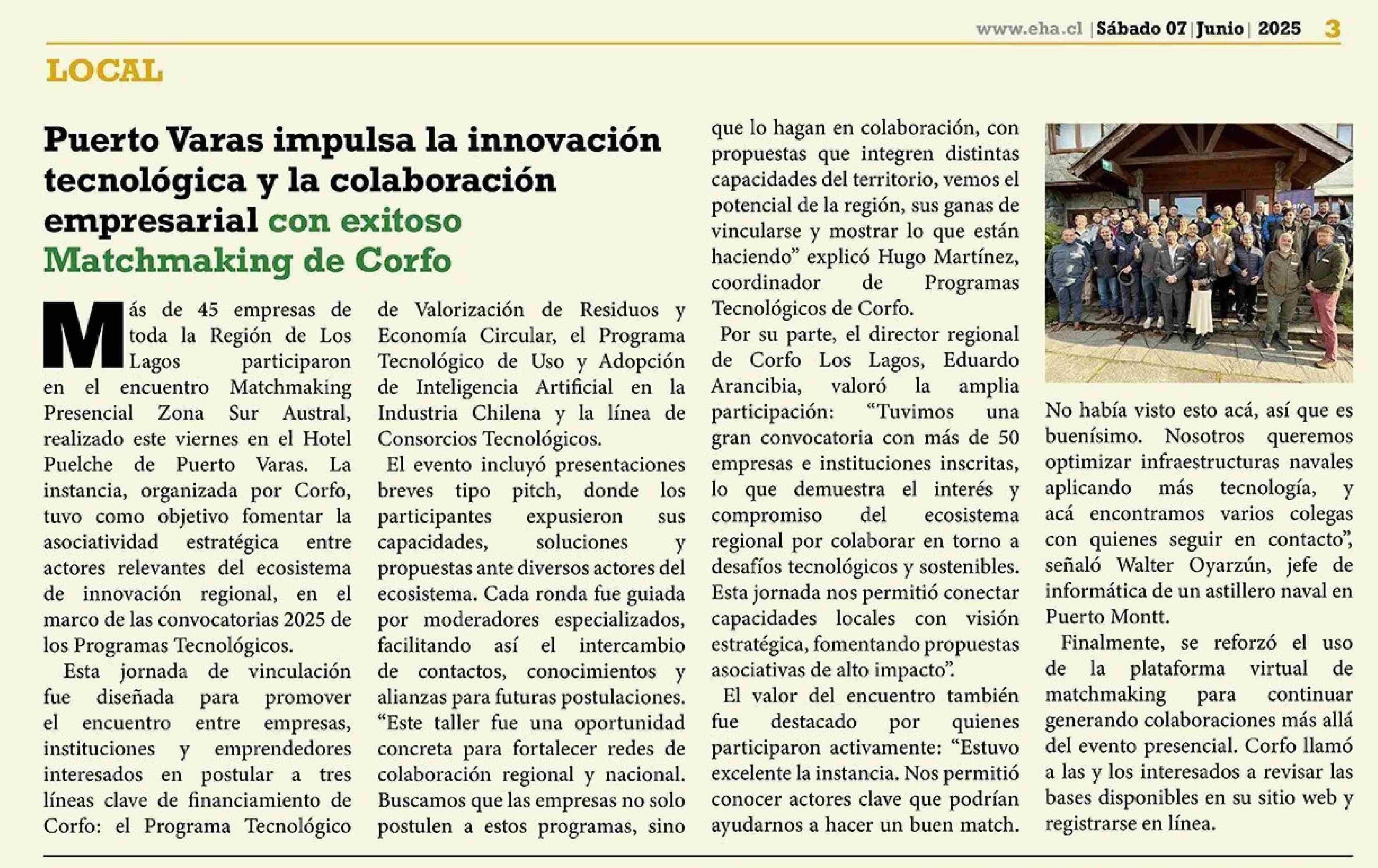 Puerto Varas impulsa la innovación tecnológica y la colaboración 07-06-2025 El Heraldo Austral |
