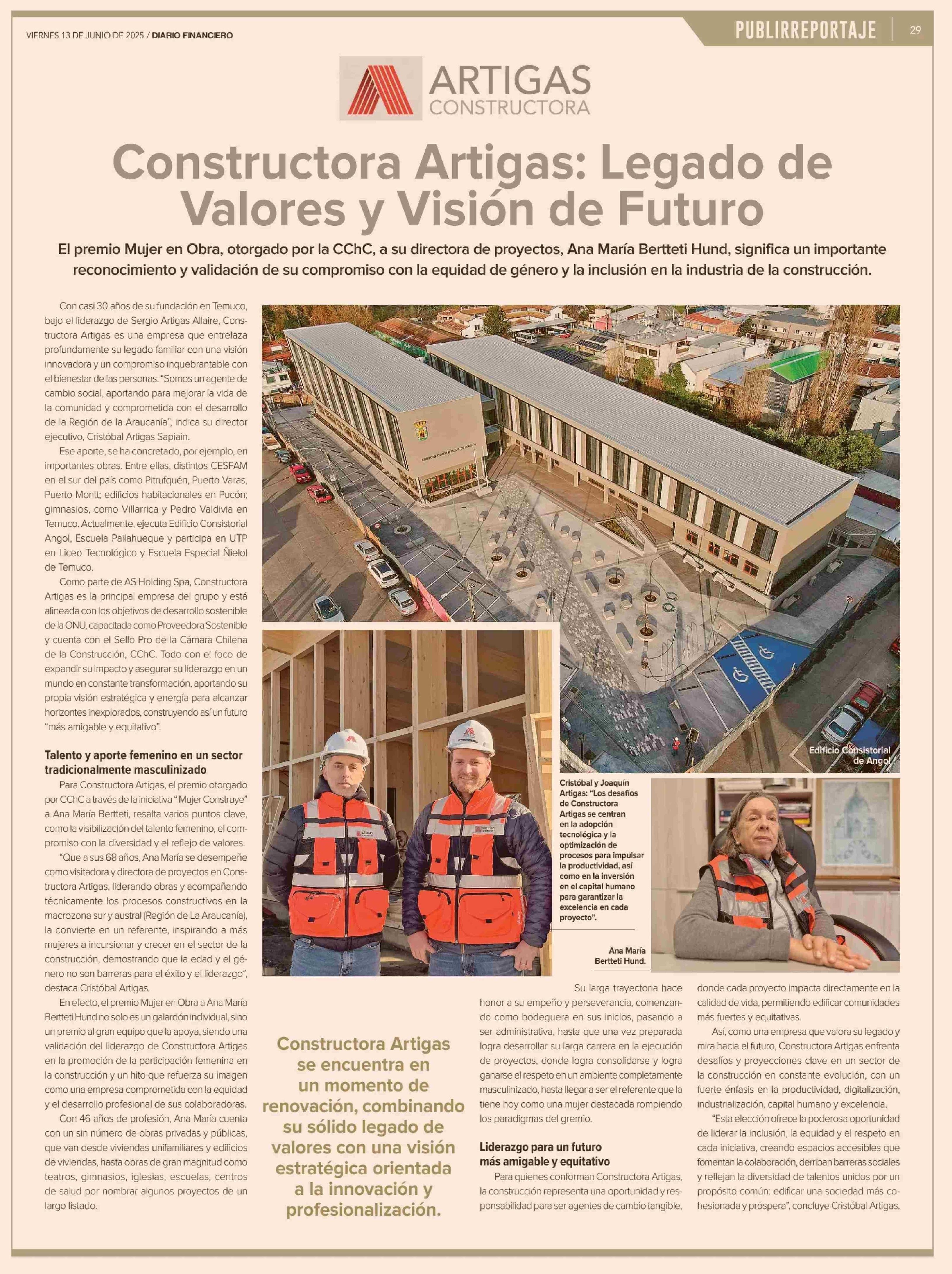 Constructora Artigas: Legado de Valores y Visión de Futuro 13-06-2025 Diario Financiero |