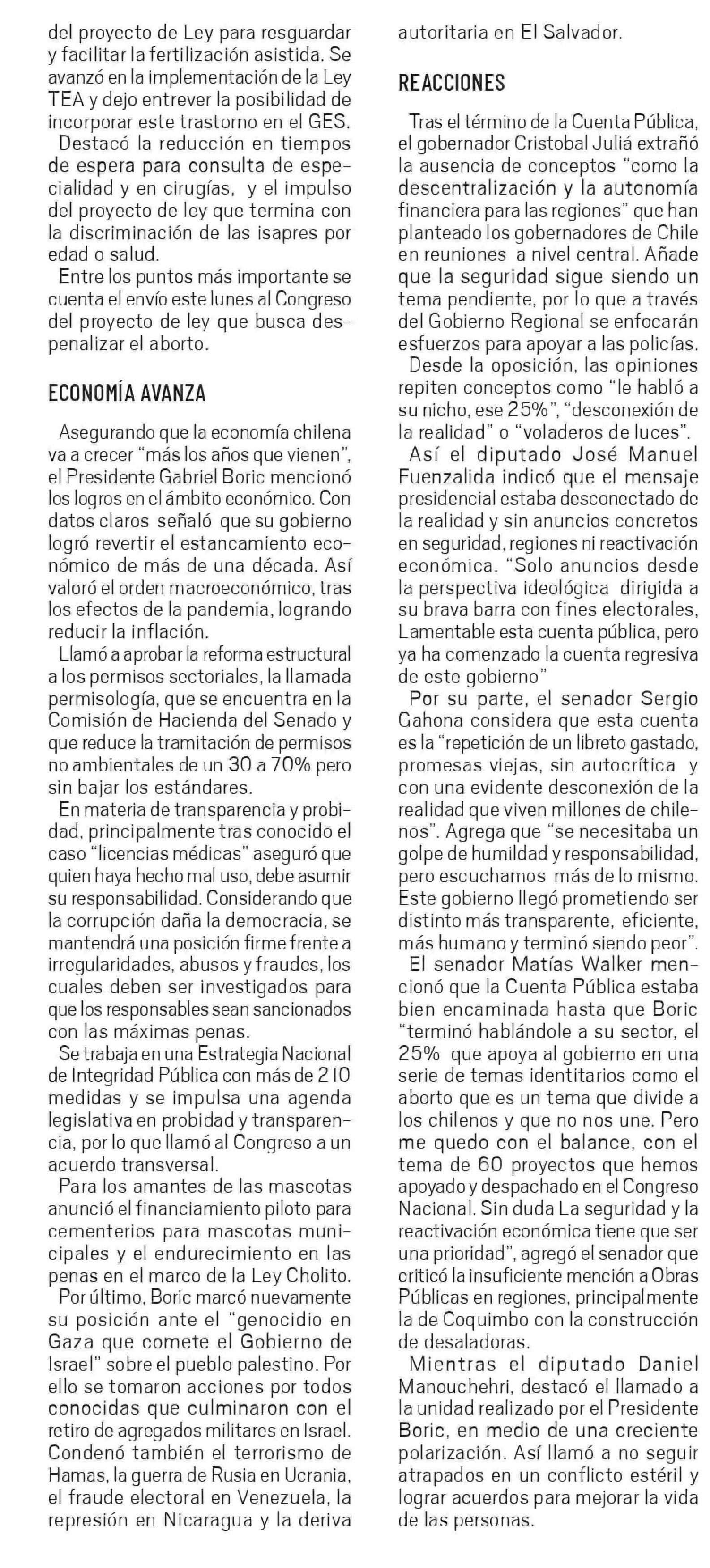 | Título: | Boric realiza última Cuenta Pública llamando a la unidad y sin anuncios regionales |