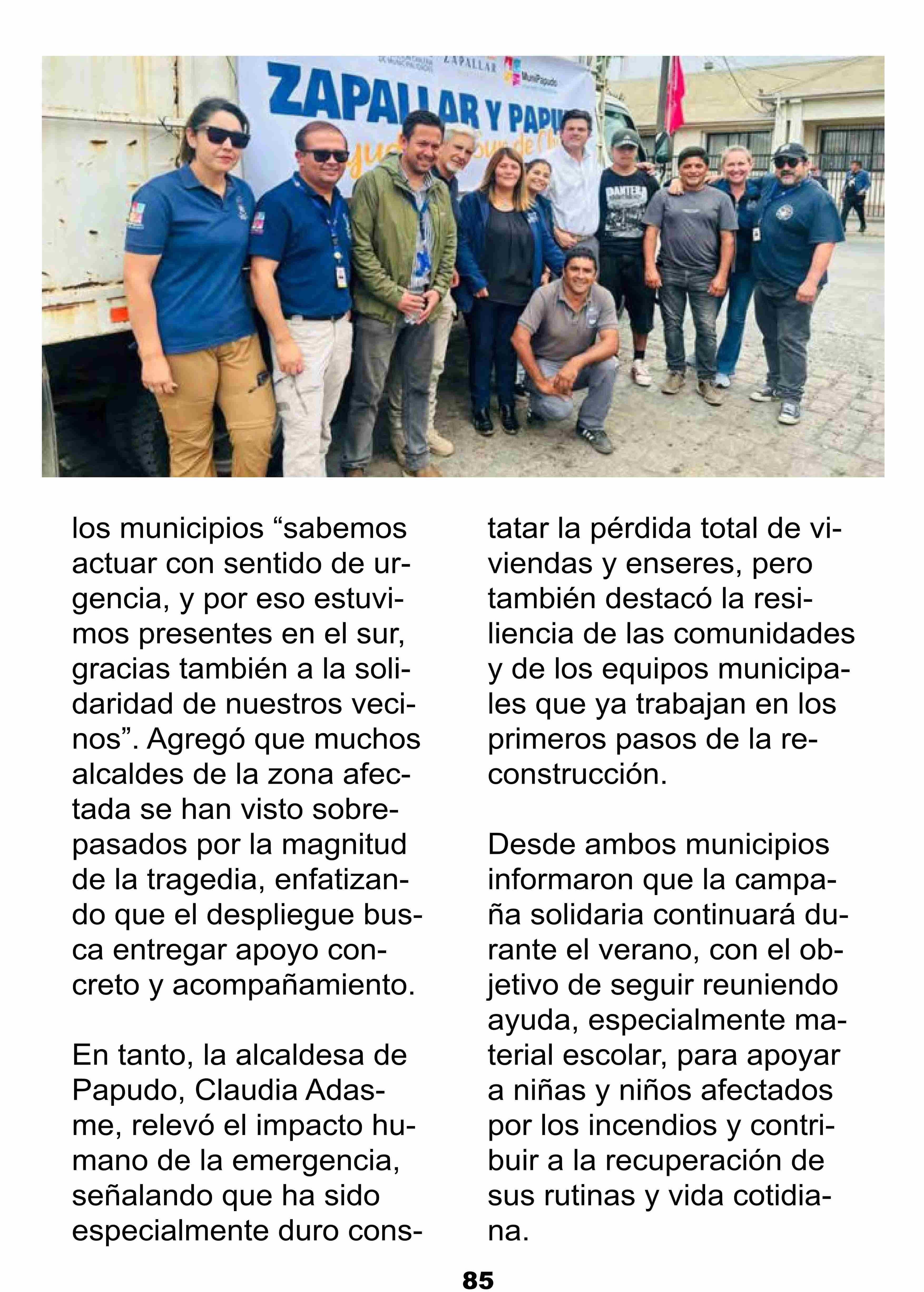 Título: Municipios de Zapallar y Papudo envían más de cinco toneladas de ayuda a zonas afectadas por incendios en el sur