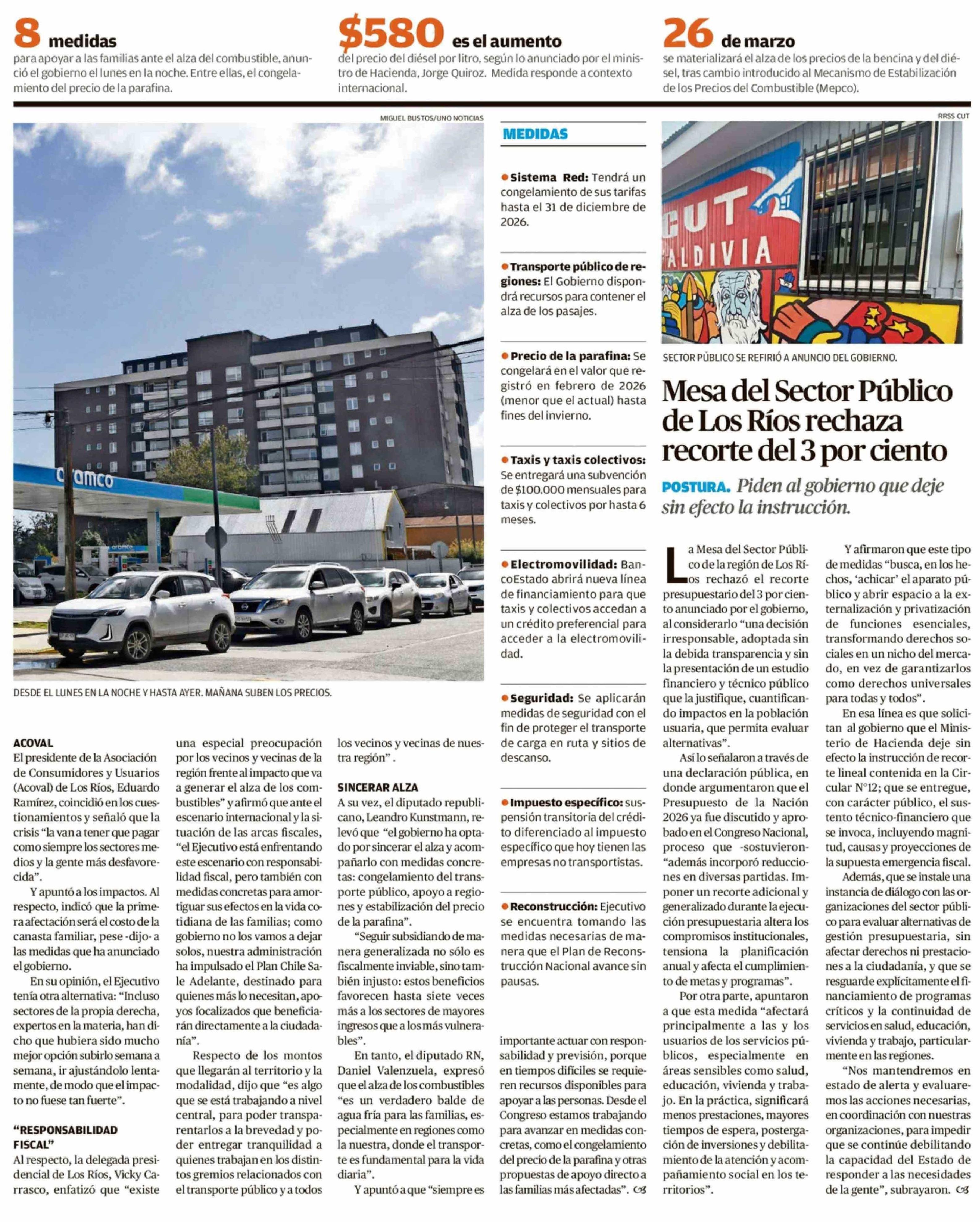 Preocupan los impactos regionales del alza en precios de combustibles 25-03-2026 Diario Austral Región de Los Ríos |