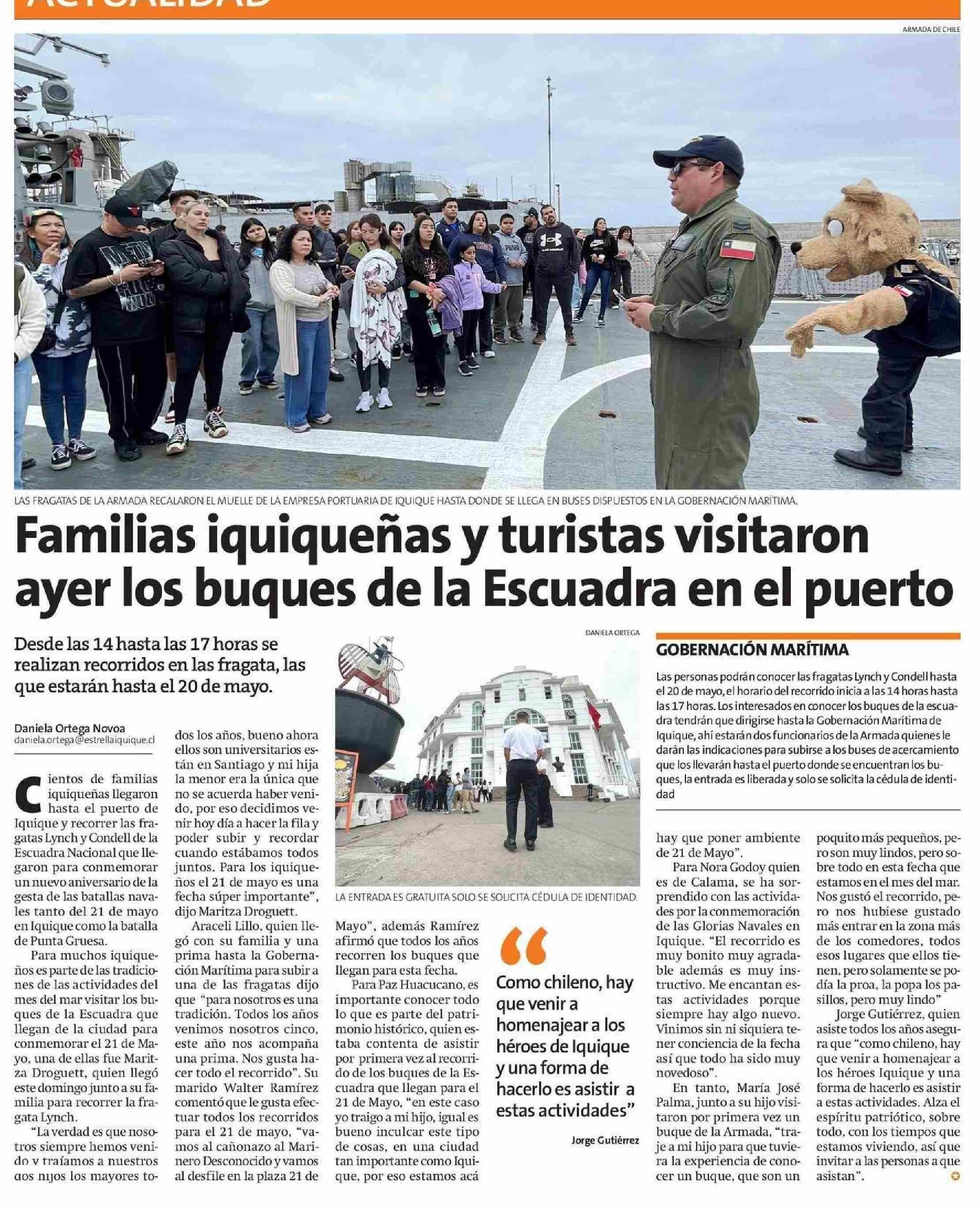 Familias iquiqueñas y turistas visitaron ayer los buques de la Escuadra en el puerto 19-05-2025 La Estrella de Iquique |