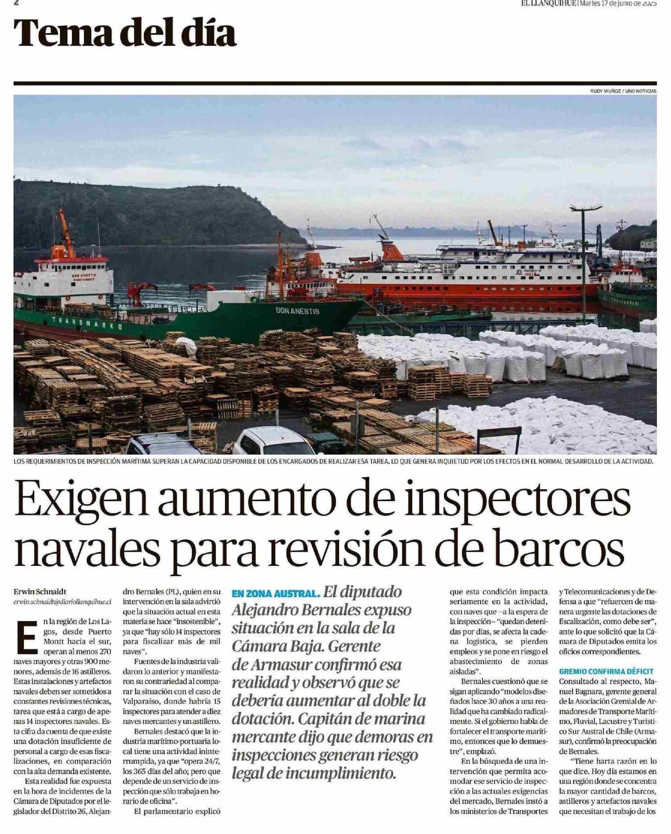 Exigen aumento de inspectores navales para revisión de barcos 17-06-2025 El Llanquihue |
