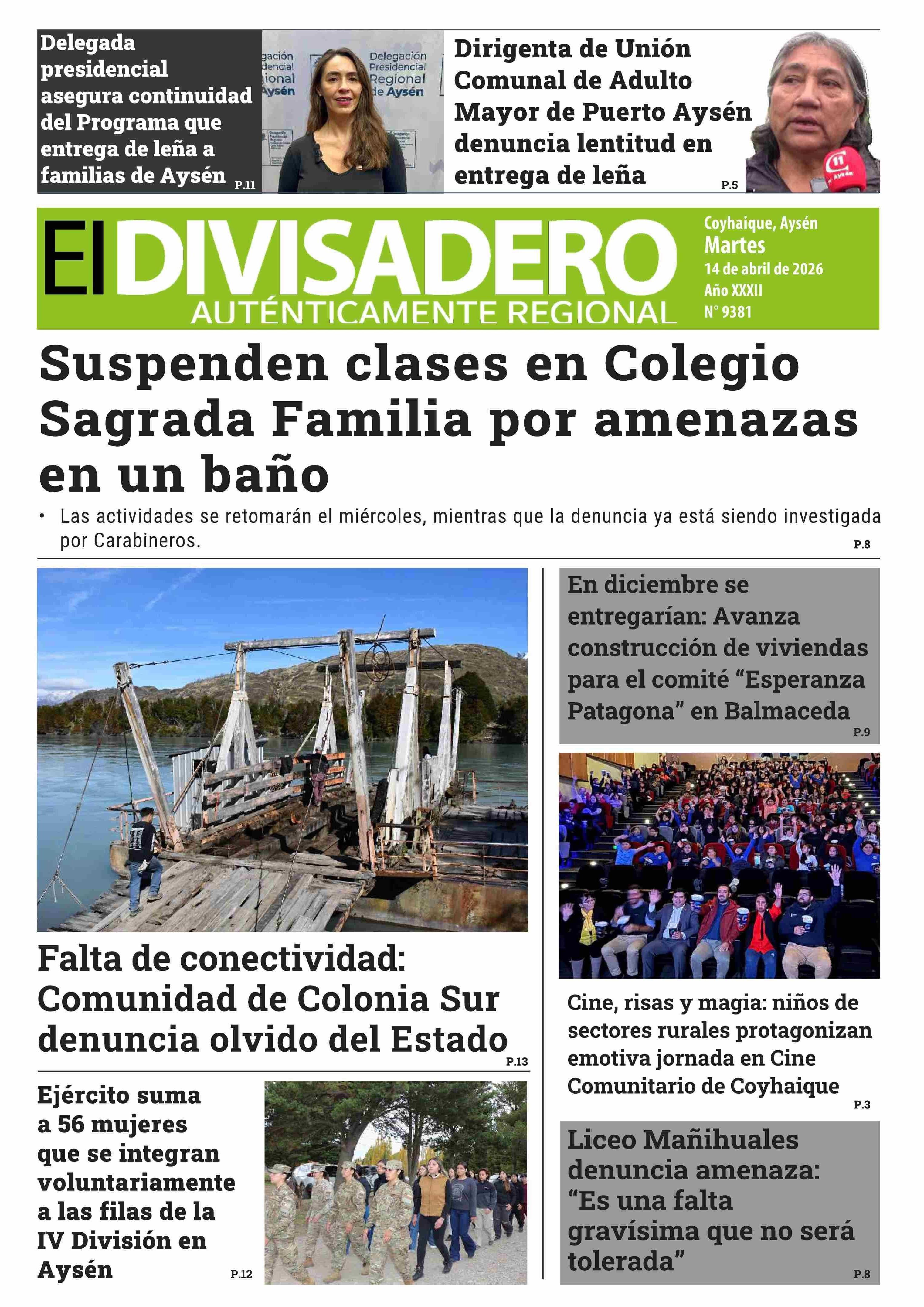 | Fecha: | 14-04-2026 | Sector: | Portada | Región: | Región Aysén del General Carlos Ibáñez del Campo |