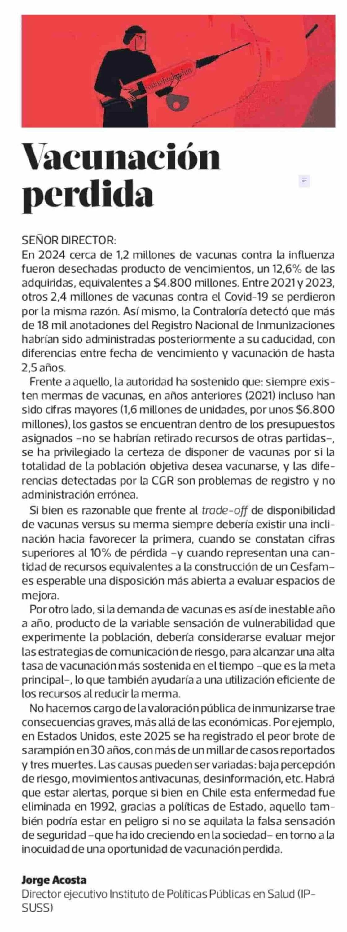 Cartas: Vacunación perdida 17-05-2025 La Tercera |