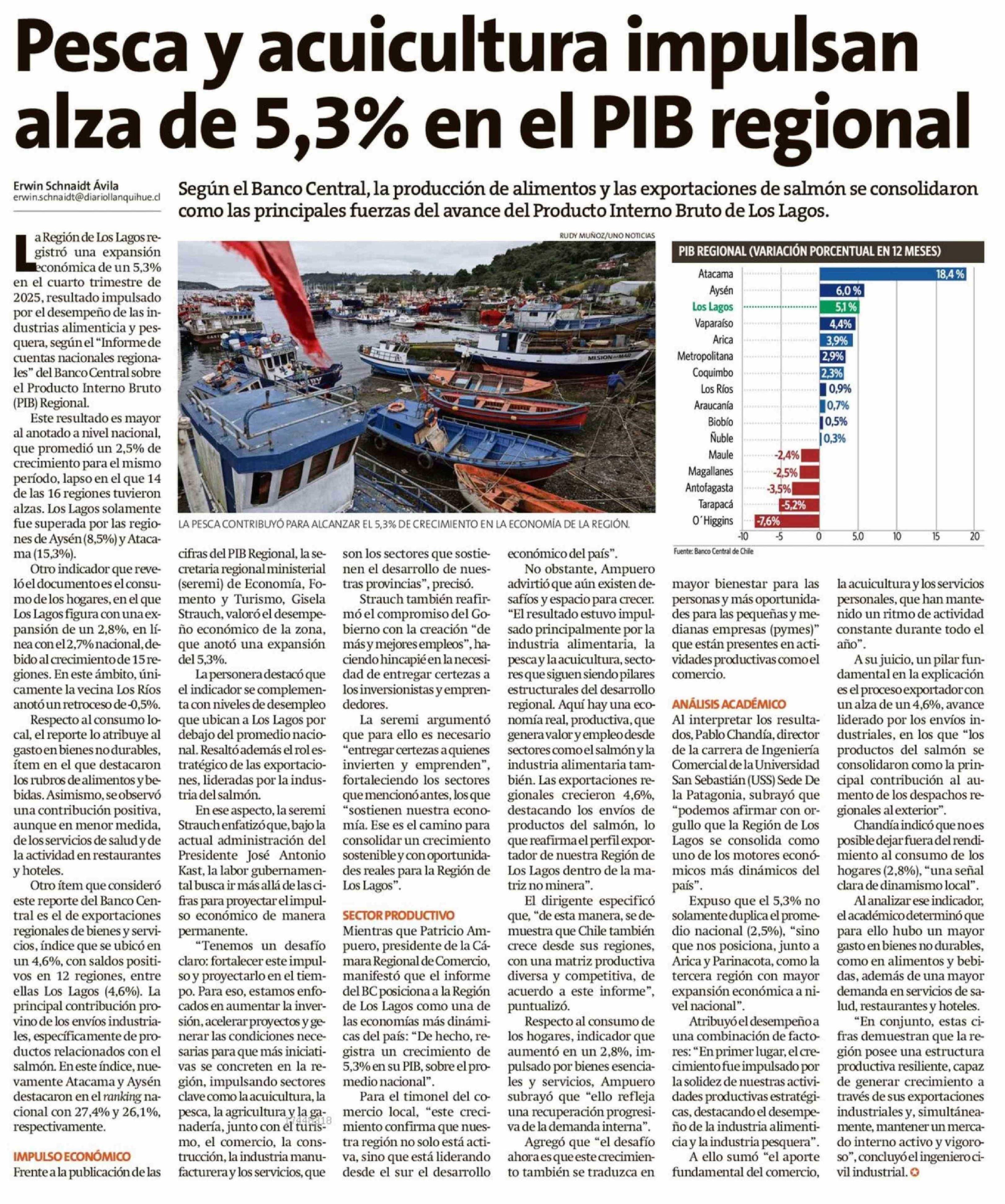 Pesca y acuicultura impulsan alza de 5,3% en el PIB regional 24-04-2026 La Estrella de Chiloé |
