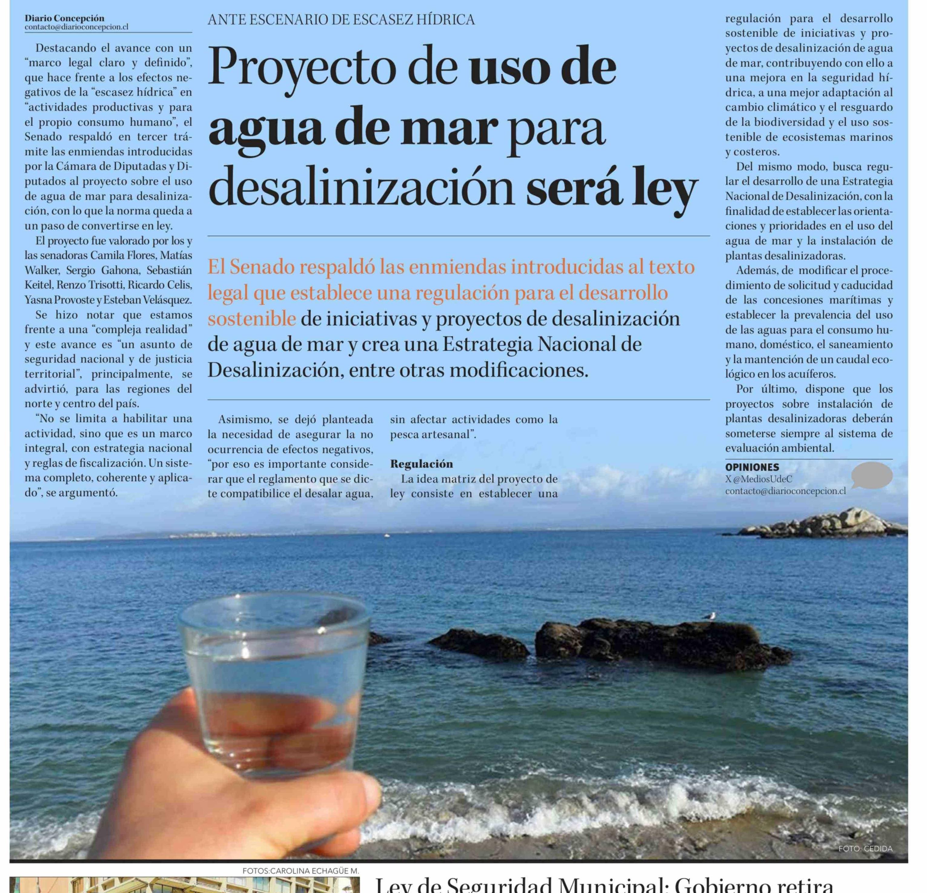 Proyecto de uso de agua de mar para desalinización será ley 28-03-2026 Diario Concepción |