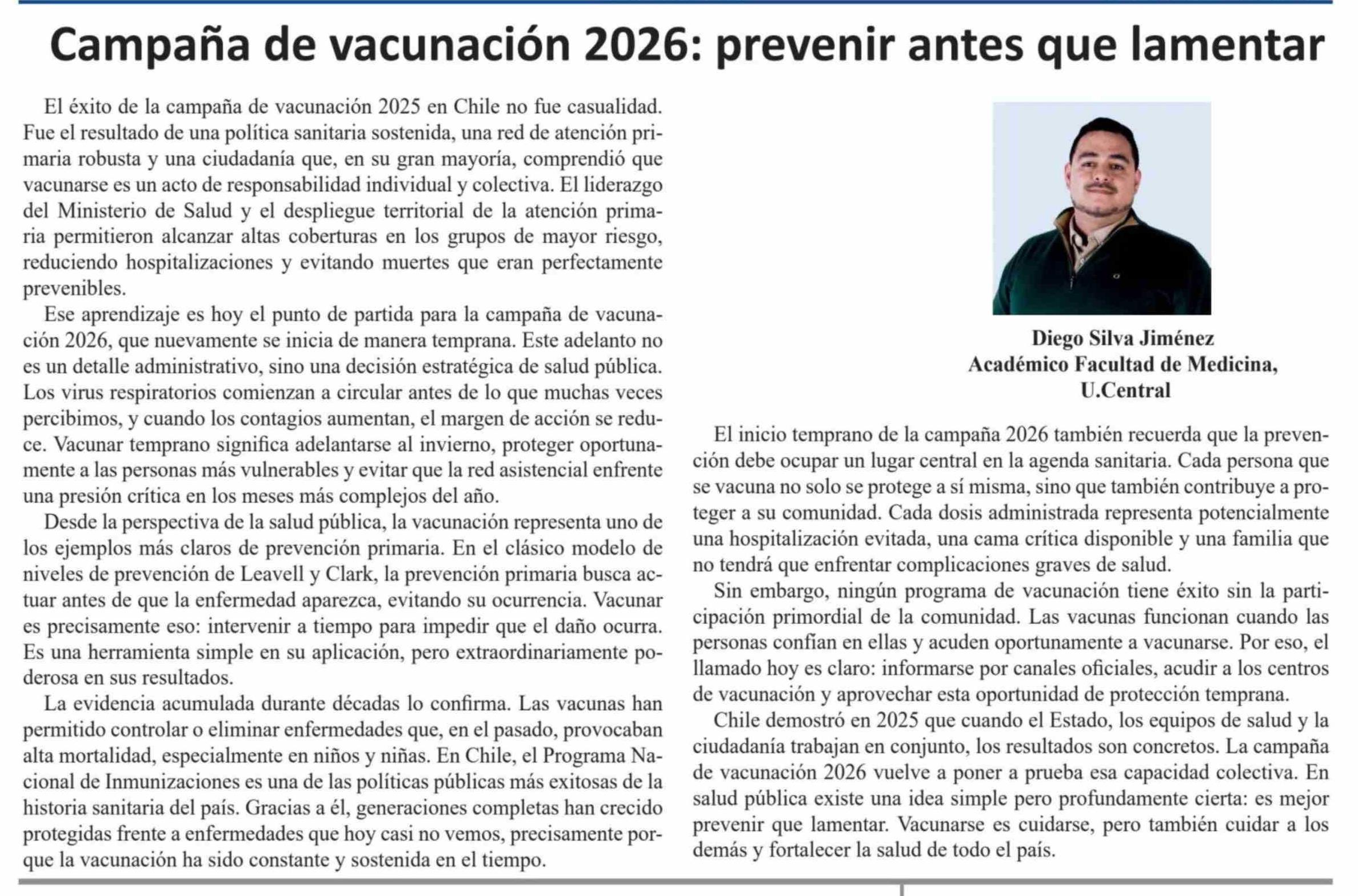 | Título: | Columnas de Opinión: Campaña de vacunación 2026: prevenir antes que lamentar |