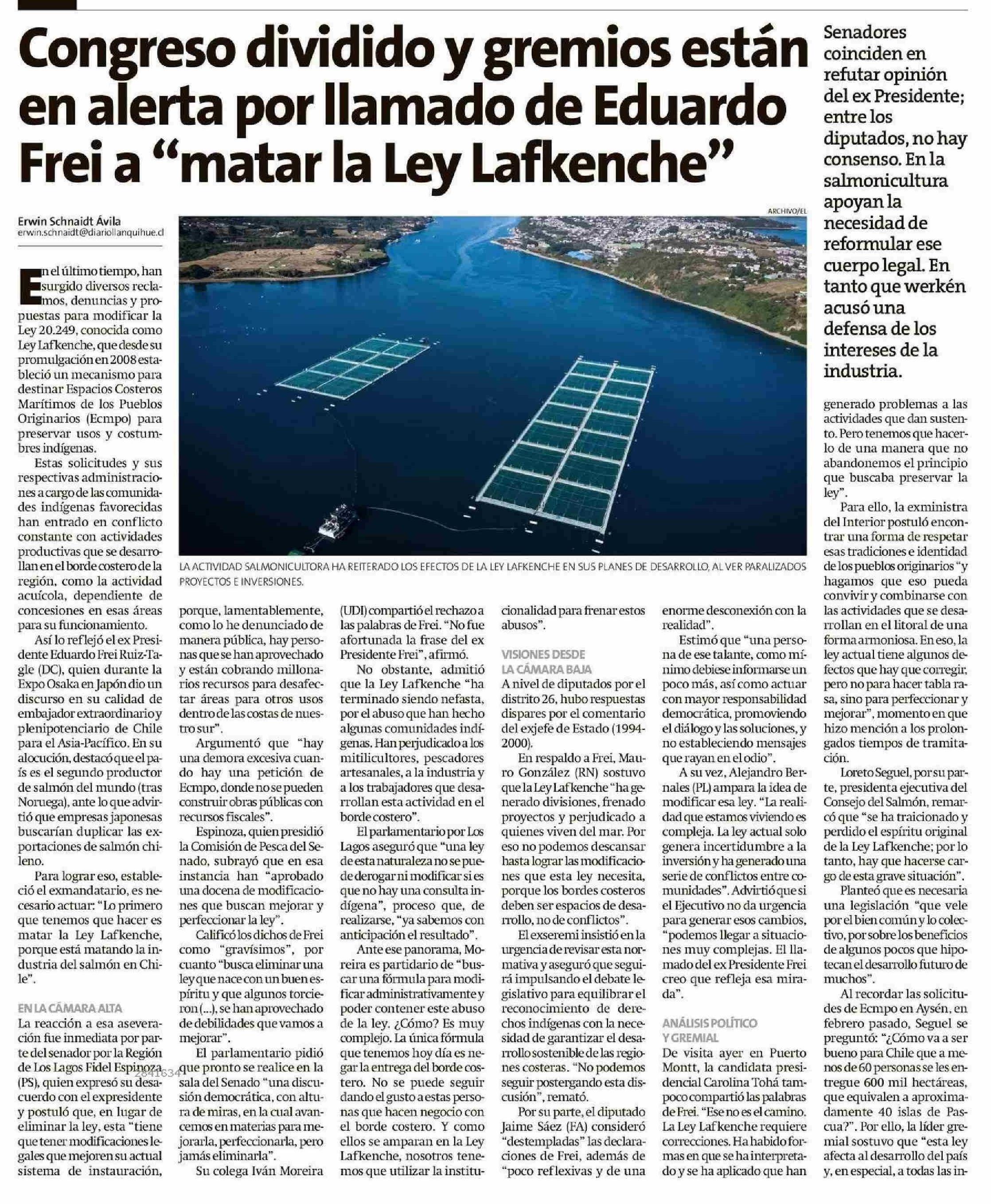 | Título: | Congreso dividido y gremios están Frei a "matar la Ley Lafkenche" en alerta por llamado de Eduardo |