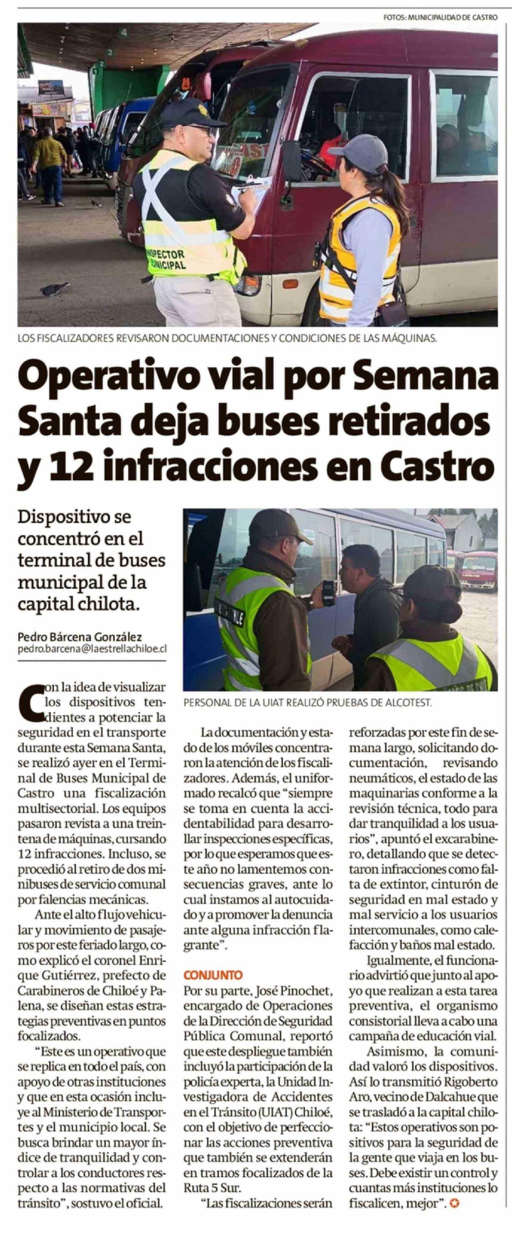 Operativo vial por Semana Santa deja buses retirados y 12 infracciones en Castro 03-04-2026 La Estrella de Chiloé |