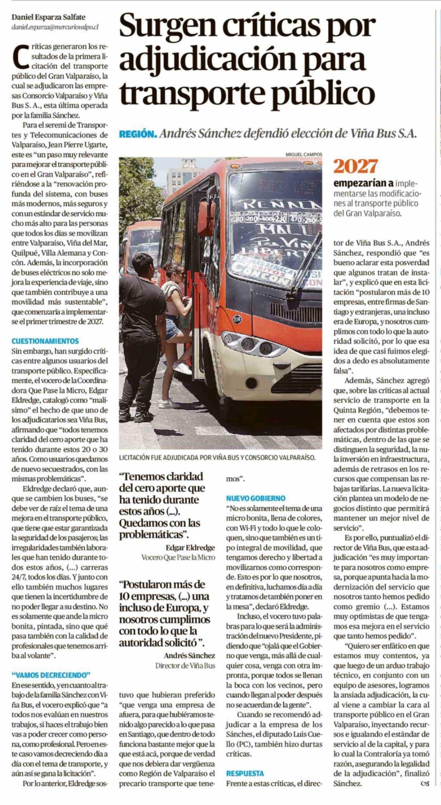 Título: Surgen críticas por adjudicación para transporte público