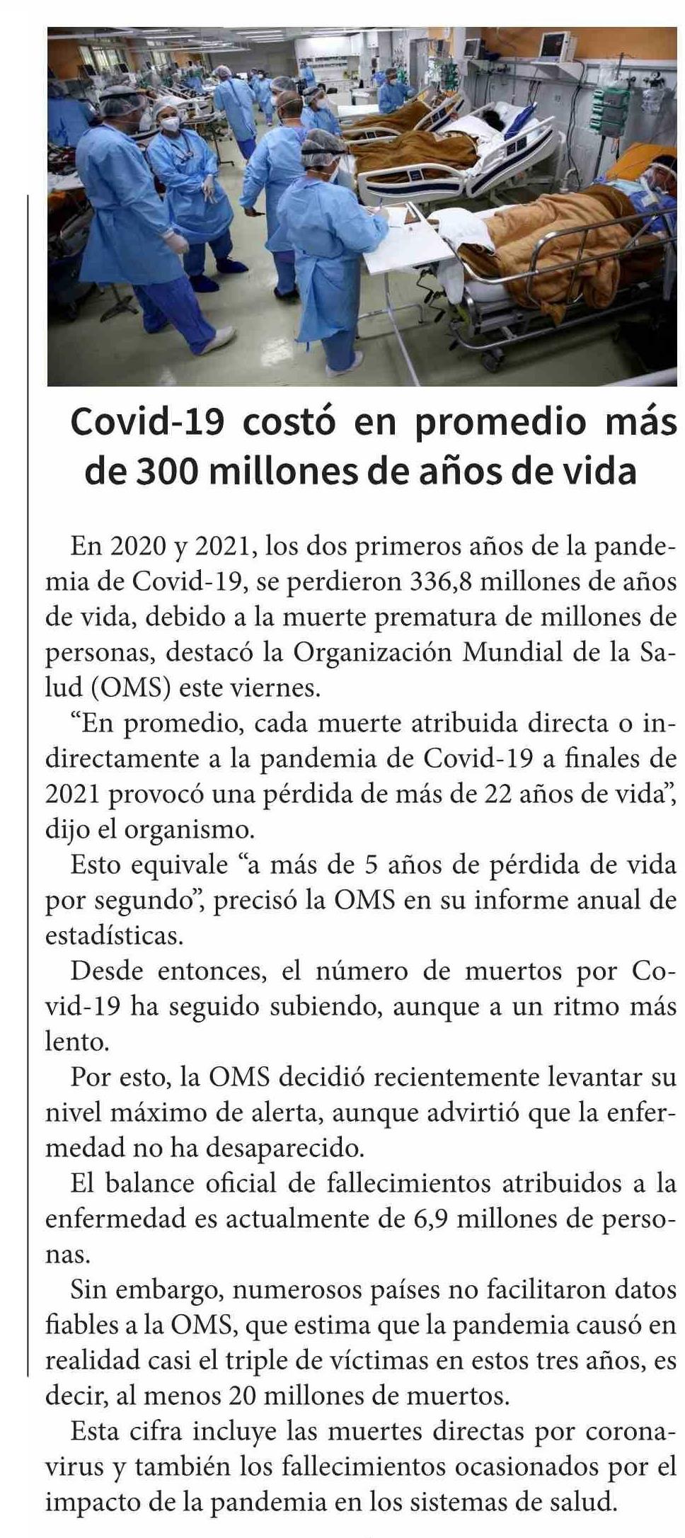 Covid-19 costó en promedio más de 300 millones de años de vida 20-05-2023 Diario Chañarcillo |