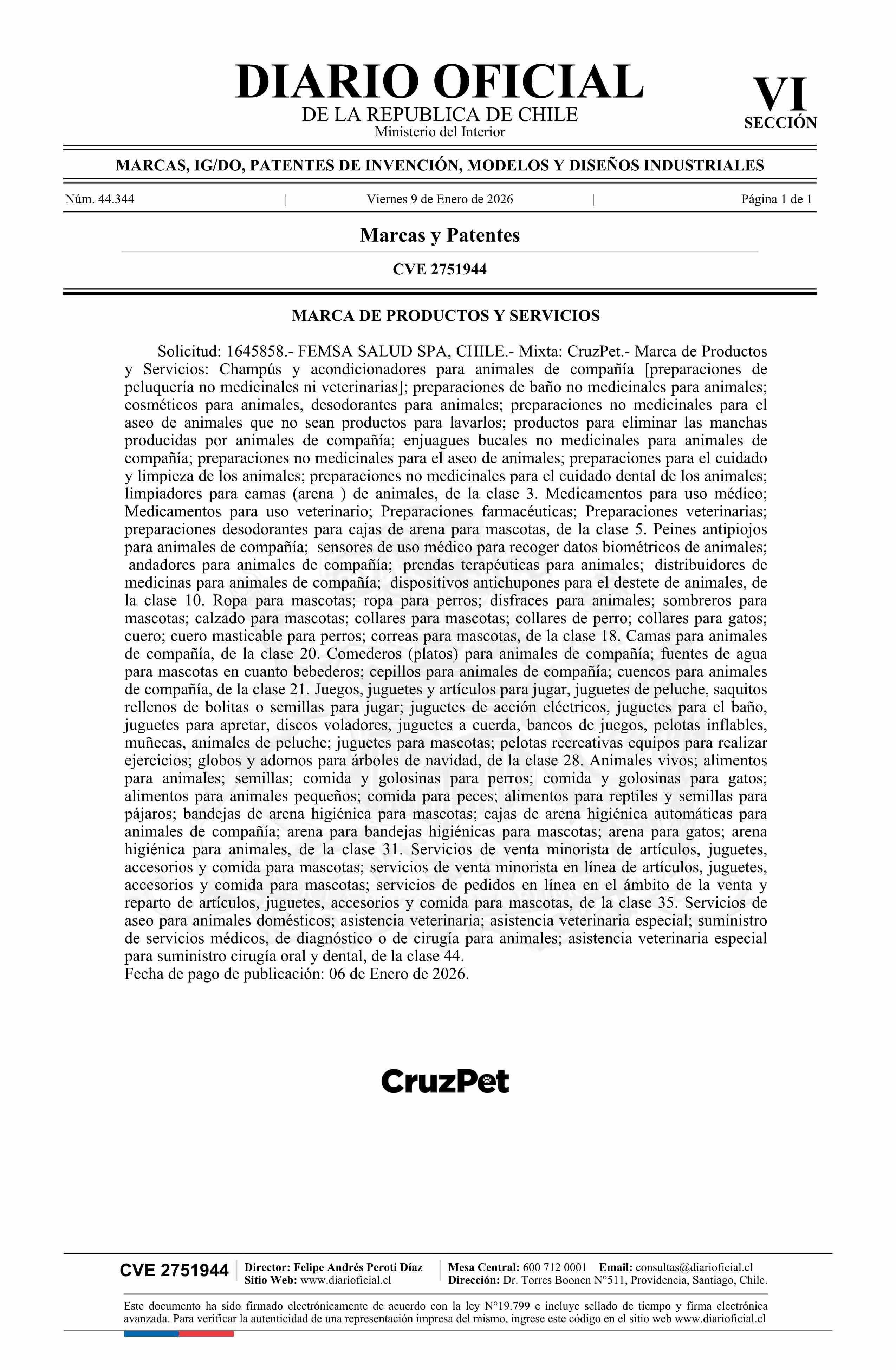 Solicitud número 1645858.- CruzPet 09-01-2026 Diario Oficial Edición Electrónica |