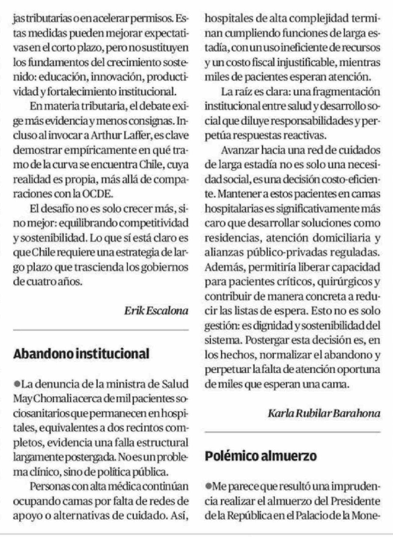 Cartas: Abandono institucional