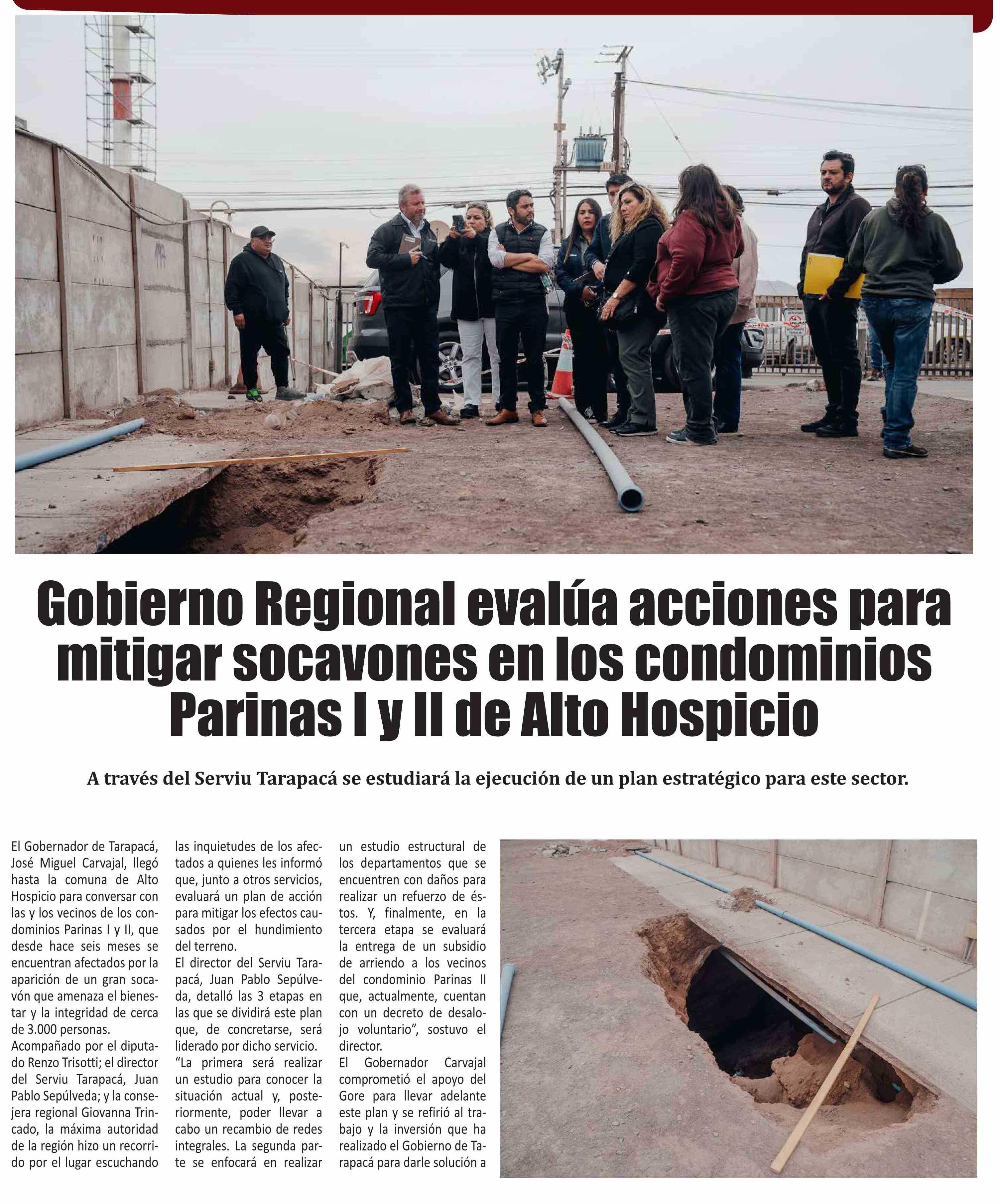 Gobierno Regional evalúa acciones para mitigar socavones en los condominios Parinas I y II de Alto Hospicio 17-06-2025 El Longino |