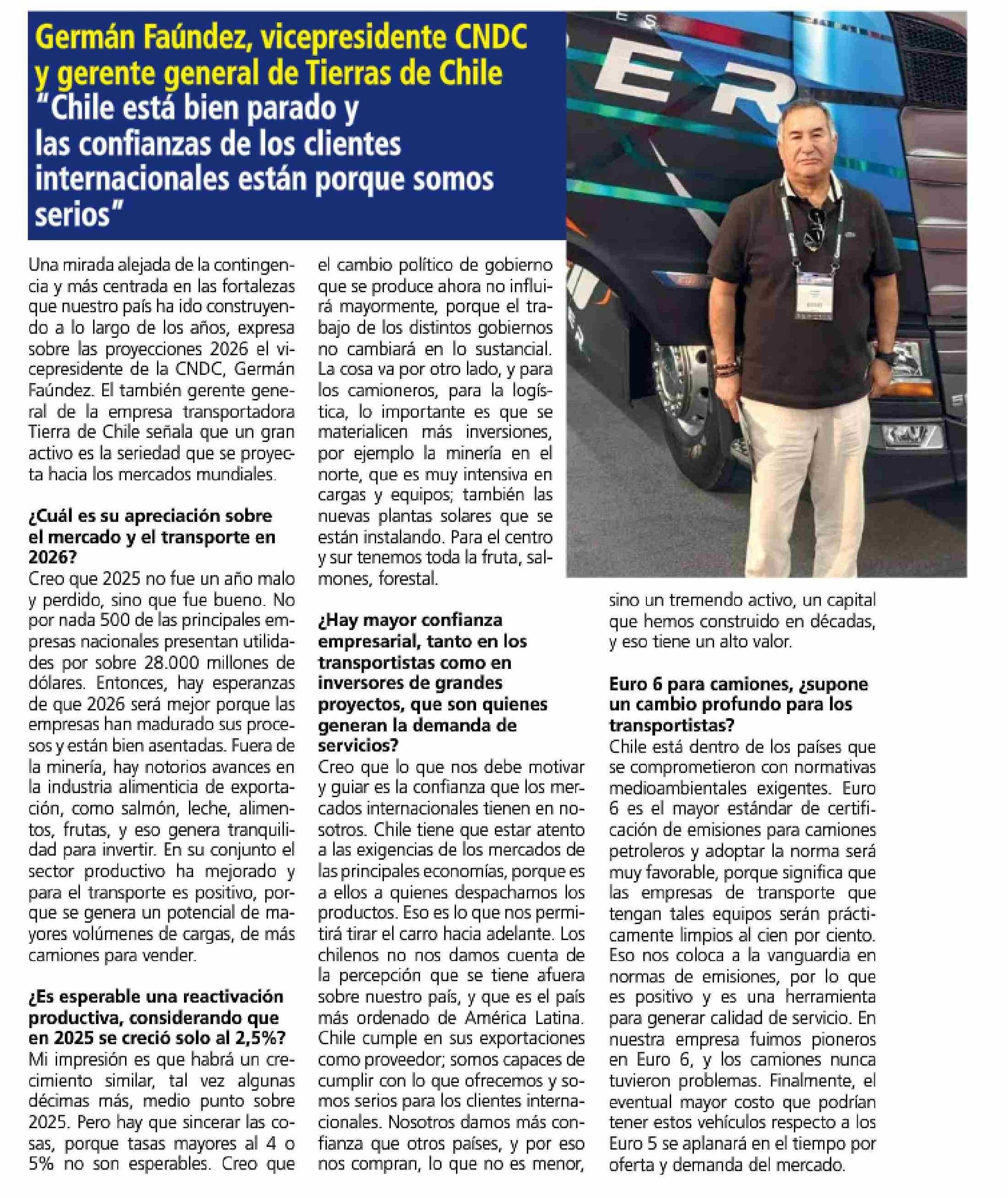 | Título: | Germán Faúndez, vicepresidente CNDC y gerente general de Tierras de Chile “Chile está bien parado y las confianzas de los clientes internacionales están porque somos serios” |