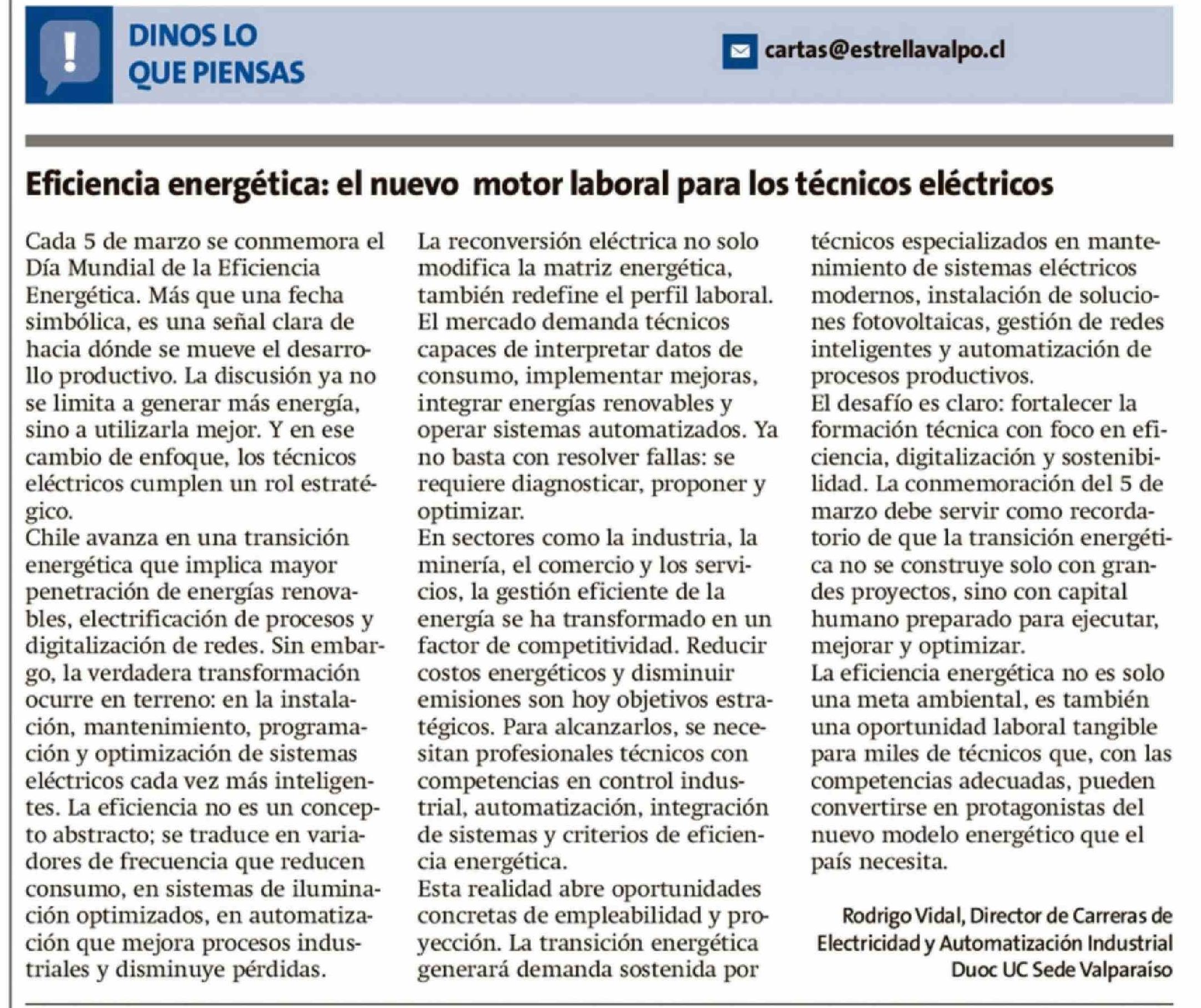 Título: Cartas: Eficiencia energética: el nuevo motor laboral para los técnicos eléctricos