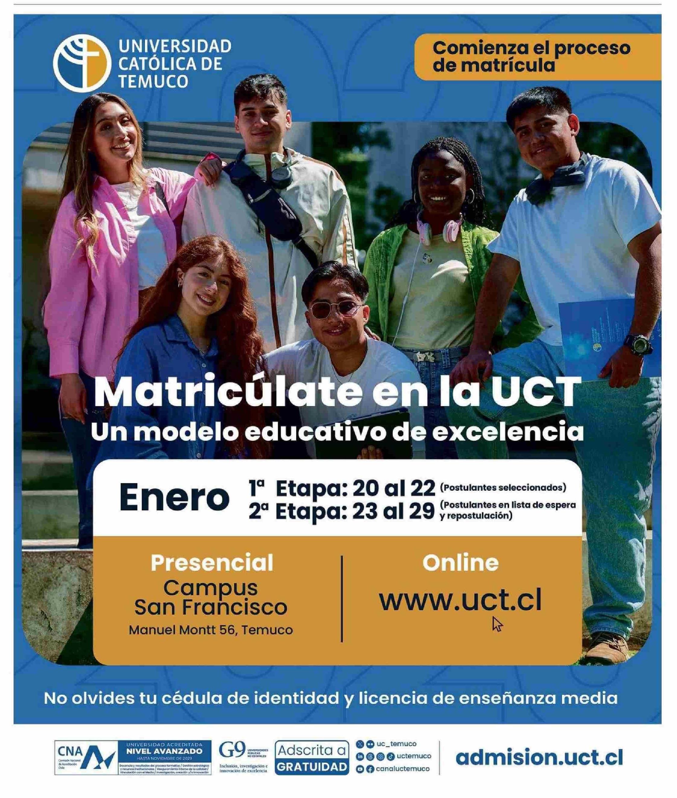 Aviso Universidad: UNIVERSIDAD CATÓLICA DE TEMUCO 18-01-2026 El Austral de la Araucanía |